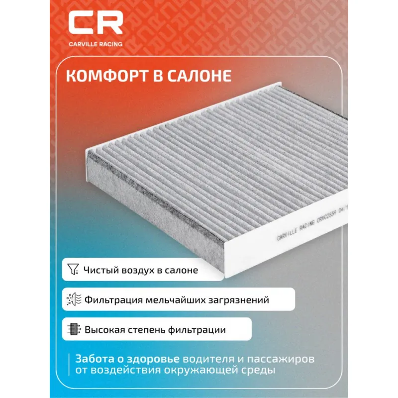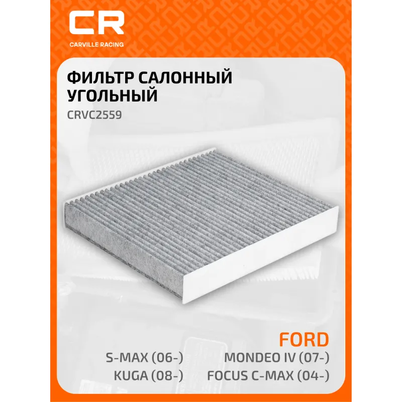 Фильтр салонный угольный для автомобилей Ford Mondeo IV (07-)/Focus C-Max (04-)/S-Max (06-)/Kuga (08-) Описание: Фильтр салонный для автомобилей Ford (C-MAX, Focus, Galaxy, Kuga, Mondeo, S-MAX) / Форд (C-MAX, Фокус, Галакси, Куга, Мондео, S-MAX), угольный фильтр CARVILLE RACING CRVC2559 Салонные фильтры обеспечивают подачу очищенного воздуха в салон автомобиля, эффективно защищают водителя и пассажиров от воздействия пыли, сажи, смога, пыльцы и других дорожных загрязнений. Большое количество складок и большая площадь фильтрации обеспечивают фильтрацию мельчайших загрязнений и большую грязеемкость для длительного срока службы. Устойчивы к воздействию влаги и перепаду температур, предотвращают запотевание окон. Точные посадочные габариты исключают прохождение воздуха в обход фильтра. - Угольные фильтры обеспечивают лучшую фильтрацию выхлопных газов и неприятных запахов. Применяемость FORD S-MAX, MONDEO, KUGA, GALAXY, C-MAX. Чтобы убедиться, что деталь подойдет на Ваш автомобиль, пожалуйста, отправьте через кнопку 'Задать вопрос' нам сообщение с VIN-номером вашего автомобиля. Производство фильтров осуществляется на высокотехнологичных автоматизированных линиях, сертифицированных стандартом IATF 16949:2016. Вся продукция испытывается в испытательных лабораториях, аккредитованных стандартами по ISO 17025: 2017 и CNAS-CL01. В нашем магазине, вы найдете широкий ассортимент высококачественных автотоваров, автозапчастей, ремонтные комплекты авто аксессуары, электрооборудование, автогаджеты и девайсы, фильтры и многое другое. Мы гарантируем качество и надежность наших товаров. Характеристики: Артикул: CRVC2559 OEM номера: 1315 687, 1713 180, 1253 220, 1452 344, 1494 697, 3M5J-19G244-AA Ширина, мм: 210 Длина, мм: 240 Высота, мм: 35 Исполнение фильтра: Фильтр активированного угля Количество на автомобиль: 1 Комплектация: Фильтр салонный - 1 шт Гарантия: от 1 года.