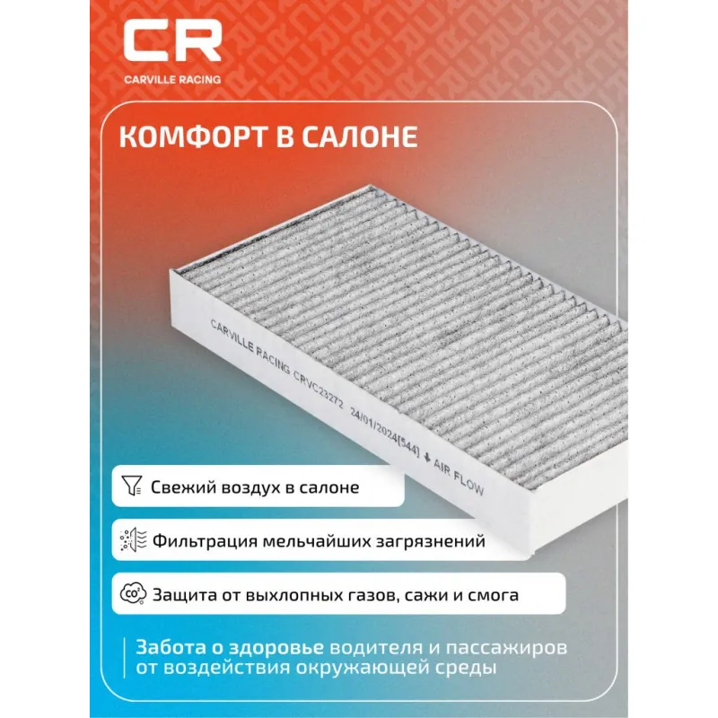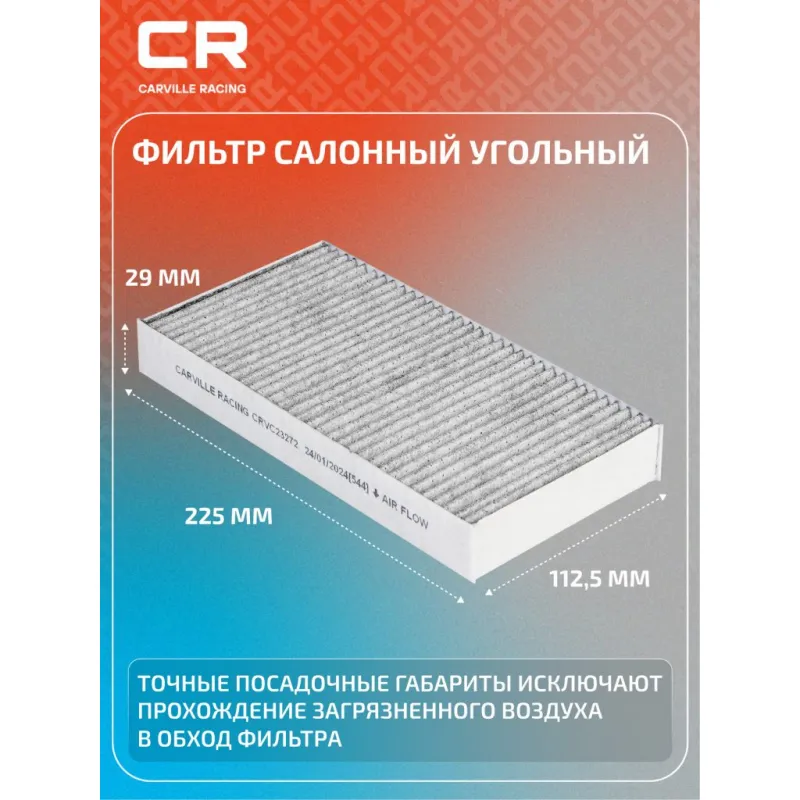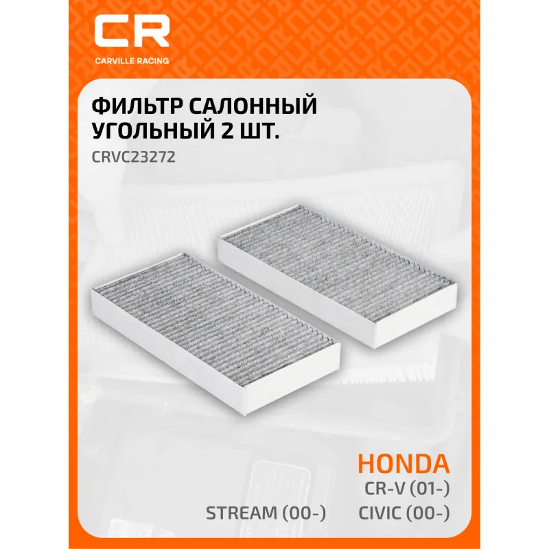 Фильтр салонный угольный для автомобилей Honda CR-V (01-)/Civic (00-)/Stream (00-) 2шт. Описание: Фильтр салонный для автомобилей 2 шт Honda (Civic, CR-V, FR-V, Stream) / Хонда (ЦР-В, Цивик, ФР-В, Стрим), угольный фильтр CARVILLE RACING CRVC23272 Салонные фильтры обеспечивают подачу очищенного воздуха в салон автомобиля, эффективно защищают водителя и пассажиров от воздействия пыли, сажи, смога, пыльцы и других дорожных загрязнений. Большое количество складок и большая площадь фильтрации обеспечивают фильтрацию мельчайших загрязнений и большую грязеемкость для длительного срока службы. Устойчивы к воздействию влаги и перепаду температур, предотвращают запотевание окон. Точные посадочные габариты исключают прохождение воздуха в обход фильтра. Угольные фильтры обеспечивают лучшую фильтрацию выхлопных газов и неприятных запахов. Применяемость HONDA STREAM, FR-V, CR-V, CIVIC, INTEGRA, CROSSROAD. Чтобы убедиться, что деталь подойдет на Ваш автомобиль, пожалуйста, отправьте через кнопку 'Задать вопрос' нам сообщение с VIN-номером вашего автомобиля. Производство фильтров осуществляется на высокотехнологичных автоматизированных линиях, сертифицированных стандартом IATF 16949:2016. Вся продукция испытывается в испытательных лабораториях, аккредитованных стандартами по ISO 17025: 2017 и CNAS-CL01. В нашем магазине, вы найдете широкий ассортимент высококачественных автотоваров, автозапчастей, ремонтные комплекты авто аксессуары, электрооборудование, автогаджеты и девайсы, фильтры и многое другое. Мы гарантируем качество и надежность наших товаров. Характеристики: Артикул: CRVC23272 OEM номера: 80292-S7A-003, 80292-S7A-508 Ширина, мм: 112,5 Длина, мм: 225 Высота, мм: 29 Количество в комплекте, шт: 2 Исполнение фильтра: Угольный фильтр Комплект: Да Количество на автомобиль: 1 Комплектация: Фильтр салонный угольный - 2 шт Гарантия: от 1 года.