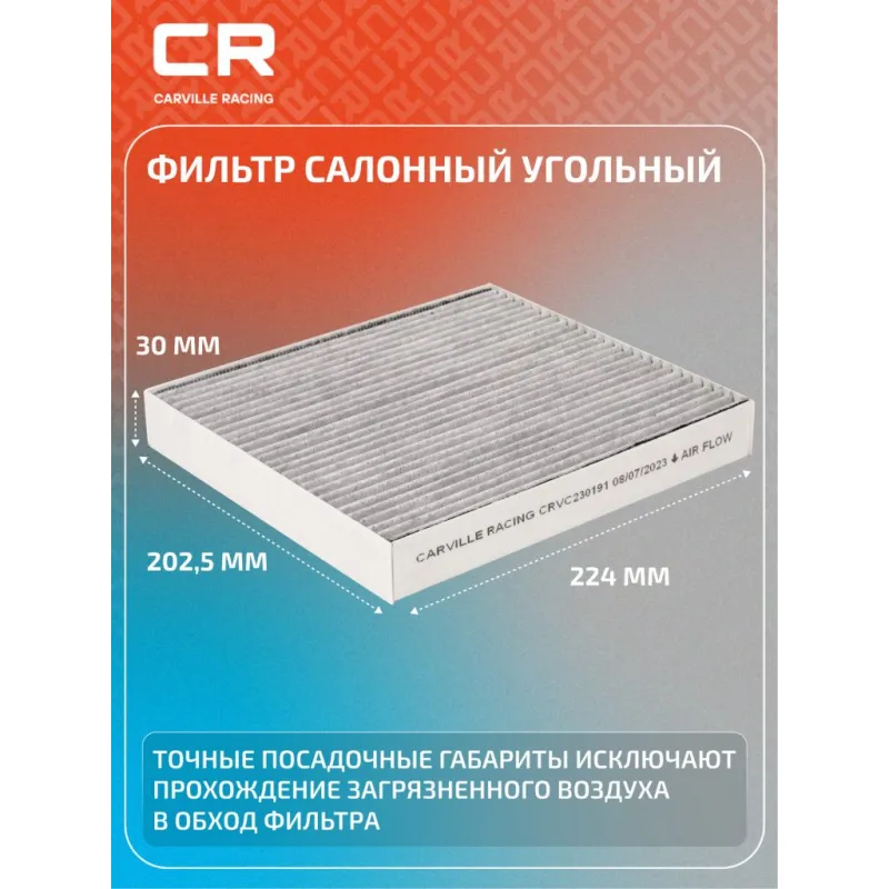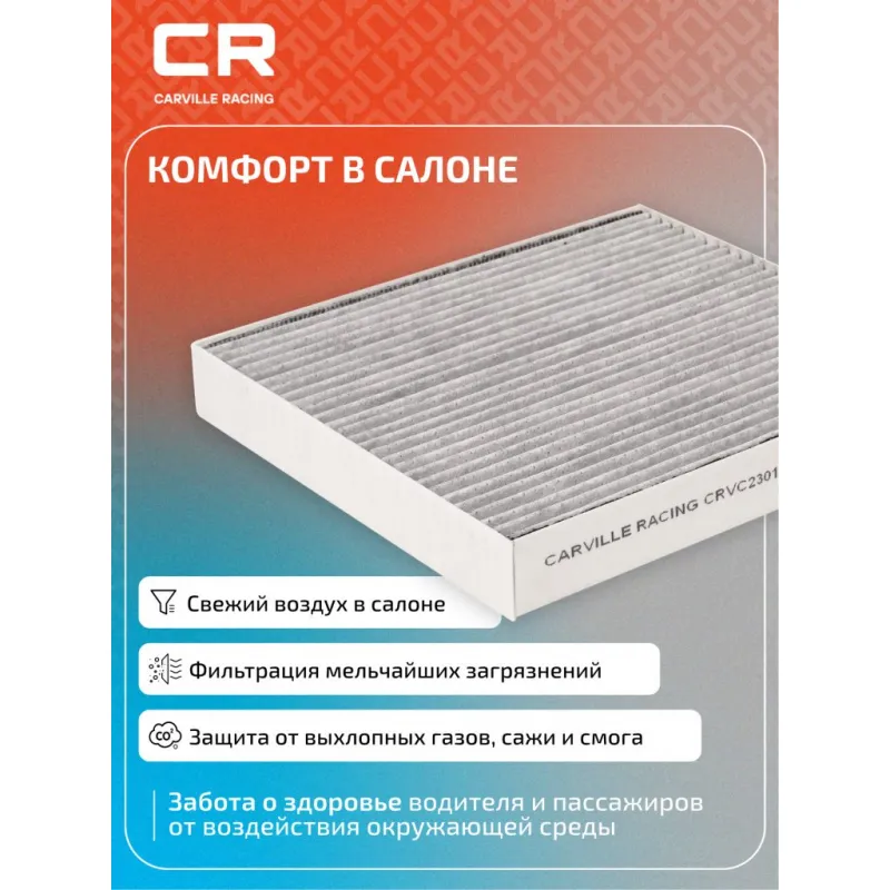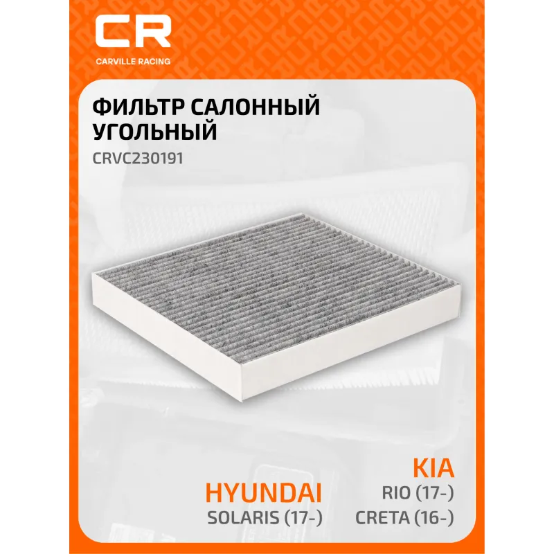 Фильтр салонный угольный для автомобилей Hyundai Solaris (17-)/Kia Rio (17-)/Creta (16-)/Tucson (15-)/Seltos (19-) Описание: Салонные фильтры обеспечивают подачу очищенного воздуха в салон автомобиля, эффективно защищают водителя и пассажиров от воздействия пыли, сажи, смога, пыльцы и других дорожных загрязнений. Большое количество складок и большая площадь фильтрации обеспечивают фильтрацию мельчайших загрязнений и большую грязеемкость для длительного срока службы. Устойчивы к воздействию влаги и перепаду температур, предотвращают запотевание окон. Применяемость HYUNDAI CRETA, KONA, SOLARIS, TUCSON, VENUE, KIA STONIC, SPORTAGE, SOUL, SELTOS, RIO. Чтобы убедиться, что деталь подойдет на Ваш автомобиль, пожалуйста, отправьте через кнопку 'Задать вопрос' нам сообщение с VIN-номером вашего автомобиля. Точные посадочные габариты исключают прохождение воздуха в обход фильтра. Угольные фильтры обеспечивают лучшую фильтрацию выхлопных газов и неприятных запахов. Антибактериальные фильтры с дополнительной защитой от бактерий, аллергенов и вирусов. Вся продукция подвергается испытаниям в специализированных лабораториях, аккредитованных стандартами с ISO 17025: 2017 и CNAS-CL01. В нашем магазине, вы найдете широкий ассортимент высококачественных автотоваров, автозапчастей, ремонтные комплекты авто аксессуары, электрооборудование, автогаджеты и девайсы, фильтры и многое другое. Мы гарантируем качество и надежность наших товаров. Характеристики: Артикул: CRVC230191 OEM номера: 97133-1R000ATK, 97133-D3200ATK, 97133-D1000, 97133-D3000, 97133-1R000, 97133-D3200, 97133-J9000 Ширина, мм: 201 Длина, мм: 224 Высота, мм: 28 Исполнение фильтра: Фильтр активированного угля Количество на автомобиль: 1 Комплектация: Фильтр салонный угольный - 1 шт Гарантия: от 1 года.