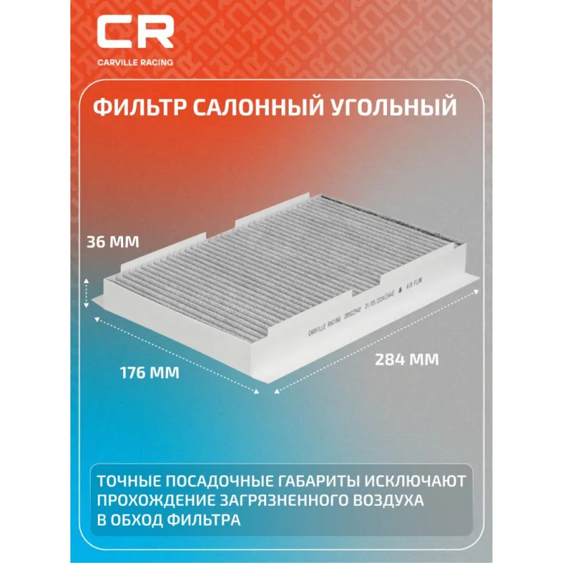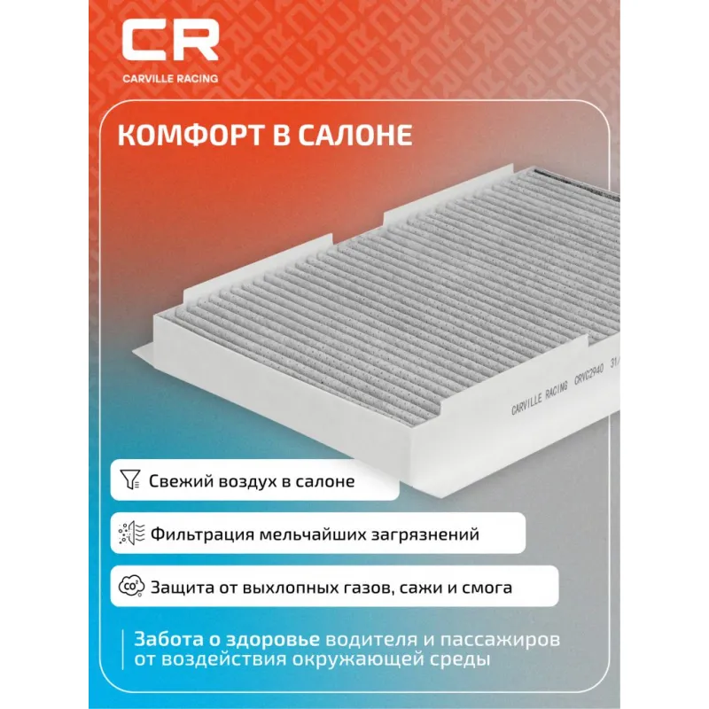 Фильтр салонный угольный для автомобилей Peugeot 308 (07-)/307 (00-)/Citroen C4 (04-)/(10-)/C3 (02-)/(09-) Описание: Салонные фильтры CRVC2940 бренда CARVILLE RACING обеспечивают подачу очищенного воздуха в салон автомобиля, эффективно защищают водителя и пассажиров от воздействия пыли, сажи, смога, пыльцы и других дорожных загрязнений. Угольные фильтры обеспечивают лучшую фильтрацию выхлопных газов и неприятных запахов. Подбор по VIN-номеру вашего автомобиля - через кнопку 'Задать вопрос'. Специалист проверит применяемость и ответит вам. Применяемость CITROEN DS4, C4 PICASSO, C4, C3, C3 PICASSO, C2, BERLINGO, XSARA PICASSO, DS DS4 CROSSBACK, PEUGEOT RCZ, 408, 308, 307, 1007, PARTNER.. Производство фильтров осуществляется на высокотехнологичных автоматизированных линиях, сертифицированных стандартом IATF 16949:2016. Вся продукция испытывается в испытательных лабораториях, аккредитованных стандартами по ISO 17025: 2017 и CNAS-CL01. Большое количество складок и большая площадь фильтрации обеспечивают фильтрацию мельчайших загрязнений и большую грязеемкость для длительного срока службы. Устойчивы к воздействию влаги и перепаду температур, предотвращают запотевание окон. Точные посадочные габариты исключают прохождение воздуха в обход фильтра. Характеристики: Артикул: CRVC2940 OEM номера: 6447 NV, 6479 41, 6479 75, 6447 KL, 6479 32 Ширина, мм: 176 Длина, мм: 284 Высота, мм: 36 Исполнение фильтра: Угольный Количество на автомобиль: 1 Комплектация: Фильтр салонный угольный - 1 шт Гарантия: от 1 года.