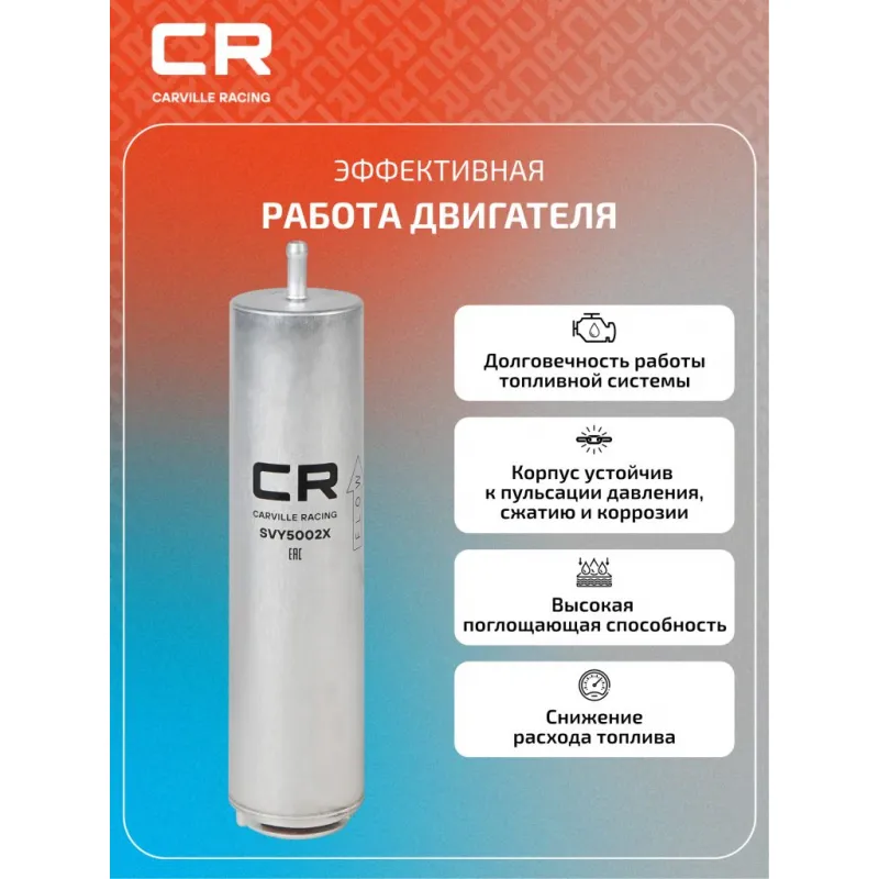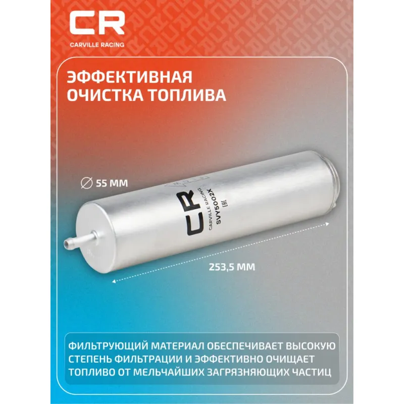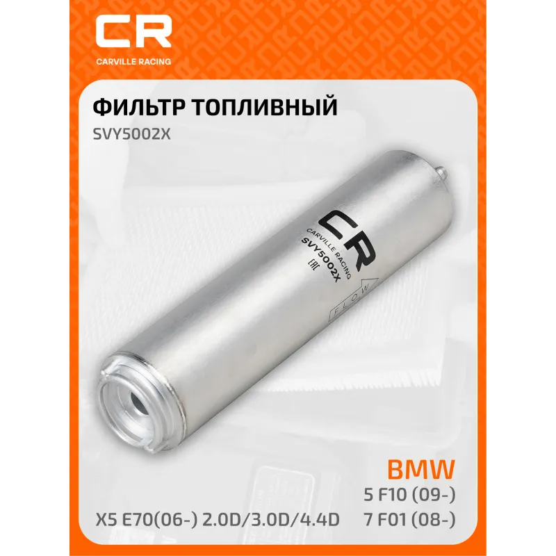 Фильтр топливный для автомобилей BMW 5 F10(09-)/ 7 F01(08-)/ X5 E70(06-) 2.0D/3.0D/4.4D/Mini (10-) 1.6D/2.0D Описание: Применяемость ALPINA D5, BMW X6, X5, X3, 7, 6, 5, 3, 1, MINI MINI, MINI PACEMAN, MINI COUNTRYMAN, MINI CLUBVAN, MINI CLUBMAN. Чтобы убедиться, что деталь подойдет на Ваш автомобиль, пожалуйста, отправьте через кнопку 'Задать вопрос' нам сообщение с VIN-номером вашего автомобиля. Топливные фильтры CARVILLE RACING эффективно очищают топливо от мельчайших загрязняющих частиц и воды, сохраняя работоспособность топливной аппаратуры автомобиля. Высокоэффективные фильтровальные материалы обеспечивают эффективное отделение самых мелких загрязнений и обладают высокой емкостью поглощения загрязнений. Благодаря минимальному сопротивлению обеспечивают наилучшую прокачиваемость топлива через фильтр. Благодаря снижению пульсации топлива в системе обеспечивается равномерная подача топлива. Прочный корпус обеспечивает полную герметичность, устойчив к пульсации давления и сжатию. Вся продукция CARVILLE RACING подвергается испытаниям в специализированных лабораториях, аккредитованных стандартами с ISO 17025: 2017 и CNAS-CL01. Основные показатели эффективности превосходят промышленные стандарты качества. Характеристики: Артикул: SVY5002X OEM номера: 13 32 7 811 227, 13 32 7 822 499, 13 32 7 811 401 Исполнение фильтра: Прямоточный фильтр Количество на автомобиль: 1 Наружный диаметр, мм: 55 Внутренний диаметр, мм: 14 Высота, мм: 253,5 Внутренний диаметр 1, мм: 9,4 Комплектация: Кольцо уплотнительное - 1 шт Фильтр топливный - 1 шт Гарантия: от 1 года.