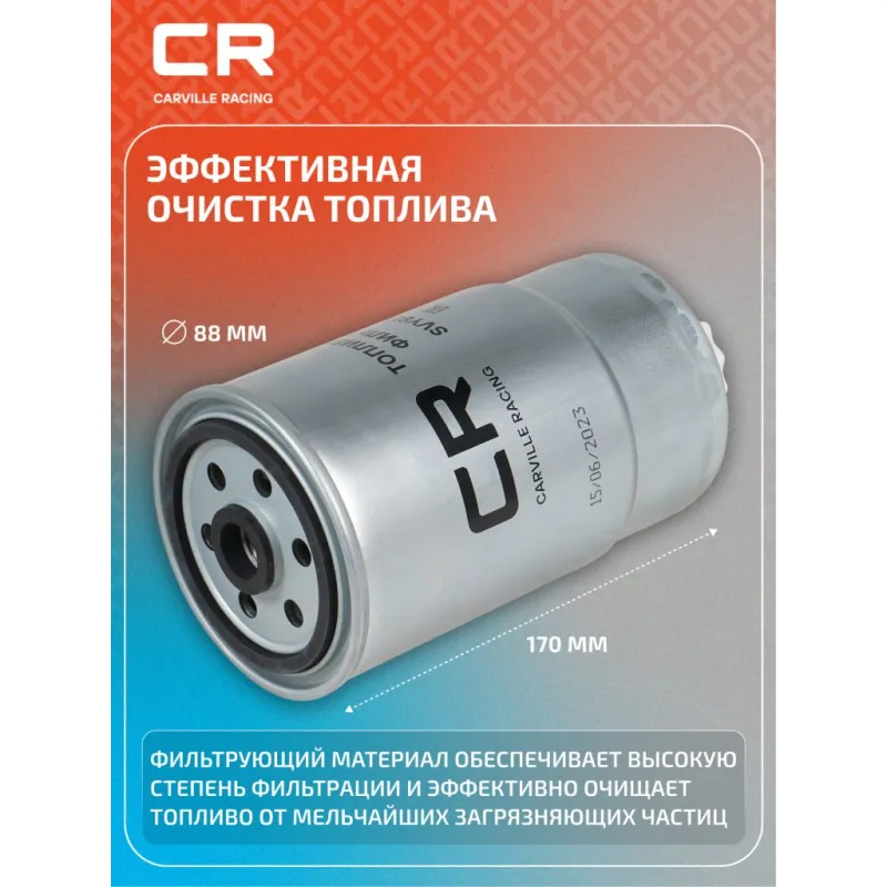 Фильтр топливный для автомобилей Fiat Ducato (Sollers-RUS) (02-) 2.3D Описание: Применяемость ALFA ROMEO GT, 166, 156, 147, CITROEN JUMPER, FIAT DUCATO, STILO, MULTIPLA, DOBLO, LANCIA THESIS, LYBRA, LDV MAXUS, PEUGEOT BOXER, PIAGGIO PORTER. Чтобы убедиться, что деталь подойдет на Ваш автомобиль, пожалуйста, отправьте через кнопку 'Задать вопрос' нам сообщение с VIN-номером вашего автомобиля. Топливные фильтры CARVILLE RACING эффективно очищают топливо от мельчайших загрязняющих частиц и воды, сохраняя работоспособность топливной аппаратуры автомобиля. Высокоэффективные фильтровальные материалы обеспечивают эффективное отделение самых мелких загрязнений и обладают высокой емкостью поглощения загрязнений. Благодаря минимальному сопротивлению обеспечивают наилучшую прокачиваемость топлива через фильтр. Благодаря снижению пульсации топлива в системе обеспечивается равномерная подача топлива. Прочный корпус обеспечивает полную герметичность, устойчив к пульсации давления и сжатию. Вся продукция CARVILLE RACING подвергается испытаниям в специализированных лабораториях, аккредитованных стандартами с ISO 17025: 2017 и CNAS-CL01. Основные показатели эффективности превосходят промышленные стандарты качества. Характеристики: Артикул: SVY8544 OEM номера: 1906 94, 77362258, 1906 C2, 1906 93 Высота, мм: 170 Наружный диаметр, мм: 88 Размер резьбы на выходе: M12x1,5-6H Исполнение фильтра: Накручиваемый фильтр Размер резьбы на входе: M16x1,5-6H Количество на автомобиль: 1 Комплектация: Фильтр топливный - 1 шт Гарантия: от 1 года.