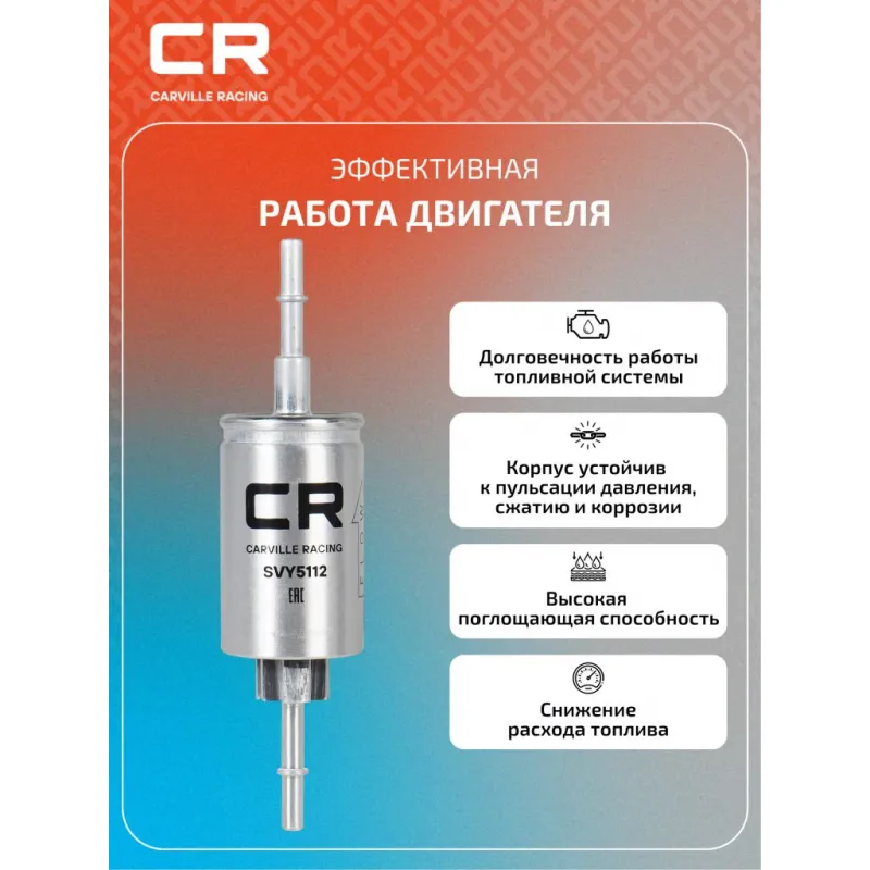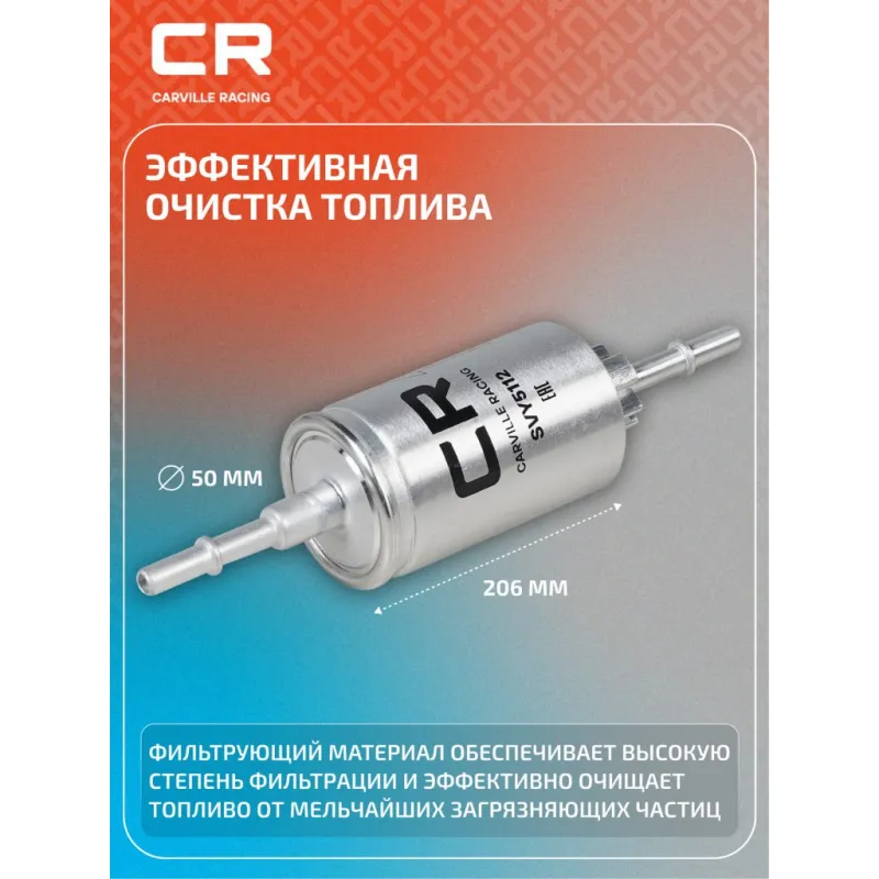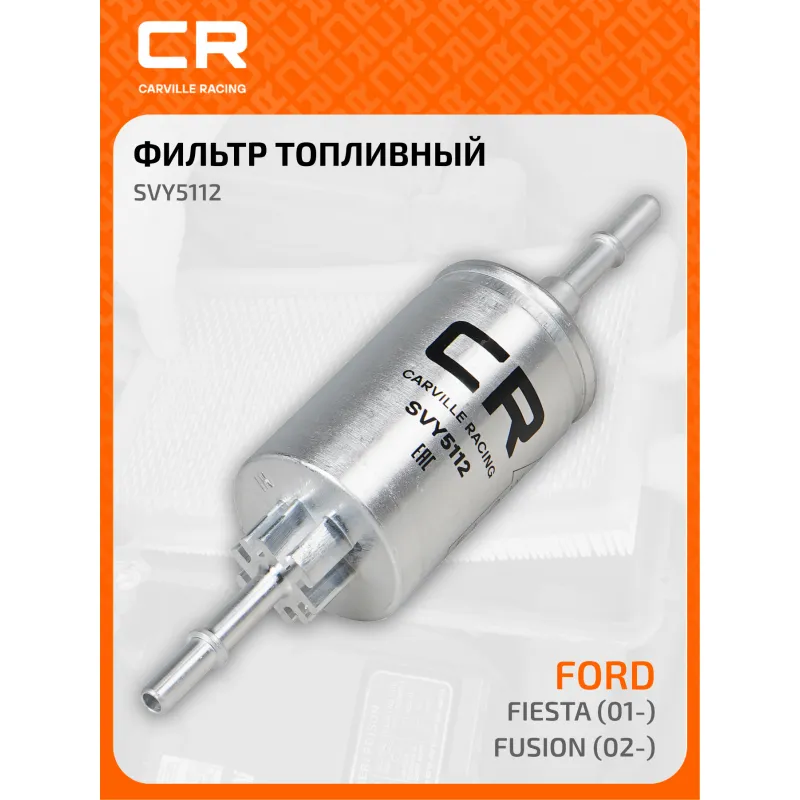 Фильтр топливный для автомобилей Ford Fiesta (01-)/ Fusion (02-) Описание: Применяемость FORD FUSION, FIESTA, MAZDA 2. Чтобы убедиться, что деталь подойдет на Ваш автомобиль, пожалуйста, отправьте через кнопку 'Задать вопрос' нам сообщение с VIN-номером вашего автомобиля. Топливные фильтры CARVILLE RACING эффективно очищают топливо от мельчайших загрязняющих частиц и воды, сохраняя работоспособность топливной аппаратуры автомобиля. Высокоэффективные фильтровальные материалы обеспечивают эффективное отделение самых мелких загрязнений и обладают высокой емкостью поглощения загрязнений. Благодаря минимальному сопротивлению обеспечивают наилучшую прокачиваемость топлива через фильтр. Благодаря снижению пульсации топлива в системе обеспечивается равномерная подача топлива. Прочный корпус обеспечивает полную герметичность, устойчив к пульсации давления и сжатию. Вся продукция CARVILLE RACING подвергается испытаниям в специализированных лабораториях, аккредитованных стандартами с ISO 17025: 2017 и CNAS-CL01. Основные показатели эффективности превосходят промышленные стандарты качества. Характеристики: Артикул: SVY5112 OEM номера: 2208333, 1140129, 2S61-9155-AB, D350-13-480 Исполнение фильтра: Прямоточный фильтр Количество на автомобиль: 1 Наружный диаметр, мм: 50 Высота, мм: 206 Диаметр впуск, мм: 8 Диаметр выпуск, мм: 8 Комплектация: Фильтр топливный - 1 шт Гарантия: от 1 года.