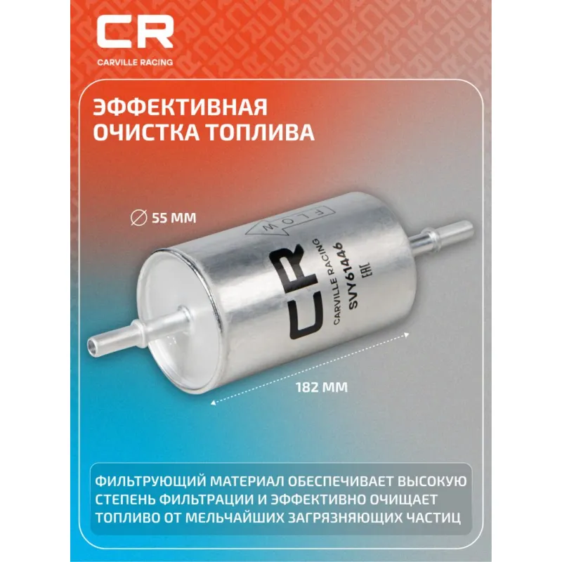 Фильтр топливный для автомобилей Ford Focus I (98-)1.4i-2.0i/2.0T/II (05-) 2.0i/Mazda 3 (03) 1.3i/1.6i/2.0i/2.3T Описание: Применяемость FORD C-MAX, FOCUS, MAZDA 3, VOLVO V50, S40, C70, C30. Чтобы убедиться, что деталь подойдет на Ваш автомобиль, пожалуйста, отправьте через кнопку 'Задать вопрос' нам сообщение с VIN-номером вашего автомобиля. Топливные фильтры CARVILLE RACING эффективно очищают топливо от мельчайших загрязняющих частиц и воды, сохраняя работоспособность топливной аппаратуры автомобиля. Высокоэффективные фильтровальные материалы обеспечивают эффективное отделение самых мелких загрязнений и обладают высокой емкостью поглощения загрязнений. Благодаря минимальному сопротивлению обеспечивают наилучшую прокачиваемость топлива через фильтр. Благодаря снижению пульсации топлива в системе обеспечивается равномерная подача топлива. Прочный корпус обеспечивает полную герметичность, устойчив к пульсации давления и сжатию. Вся продукция CARVILLE RACING подвергается испытаниям в специализированных лабораториях, аккредитованных стандартами с ISO 17025: 2017 и CNAS-CL01. Основные показатели эффективности превосходят промышленные стандарты качества. Характеристики: Артикул: SVY61446 OEM номера: 1465018, 1212739, 122 45 77, 1348376, 1465324, 2M5C-9155-AB, 2M5C-9155-AC, 2M5C-9B072-AB, 3M51-9B072-CG, 3M51-9B072-CH, 7N51-9155-AB, LFHH2-0490A, Z605-20-490A, Z605-20-490C, 31274952, 31261059, 3127160-7, 8616804 Исполнение фильтра: Прямоточный фильтр Количество на автомобиль: 1 Наружный диаметр, мм: 55 Высота, мм: 182 Диаметр впуск, мм: 7,9 Диаметр выпуск, мм: 7,9 Комплектация: Фильтр топливный - 1 шт Гарантия: от 1 года.