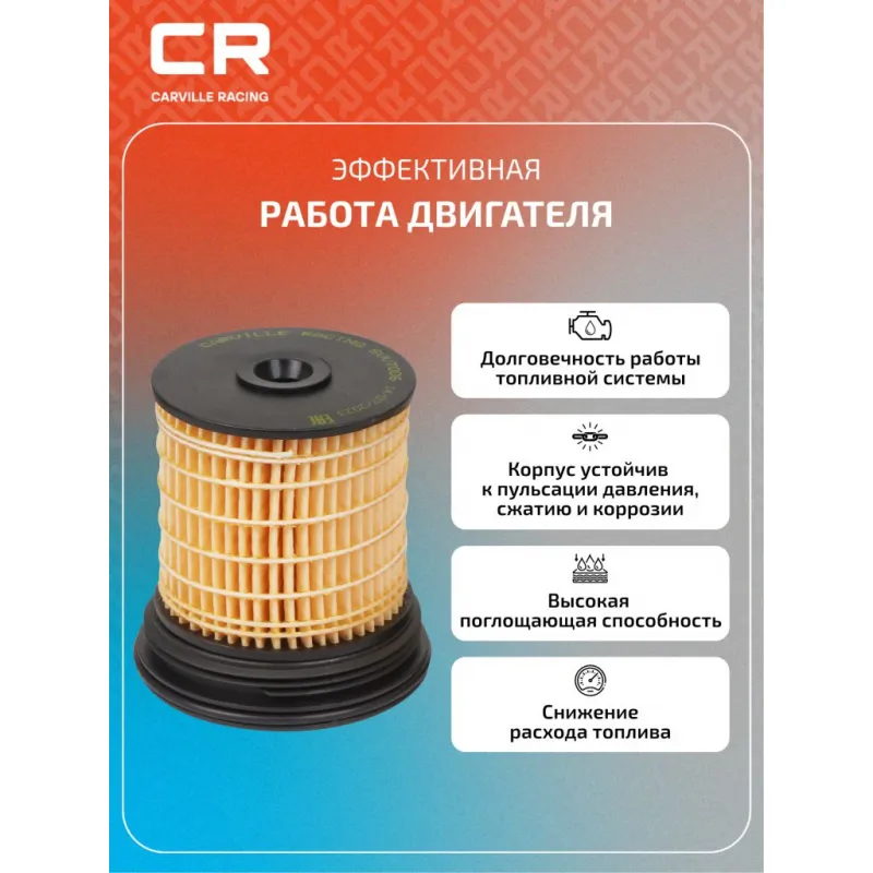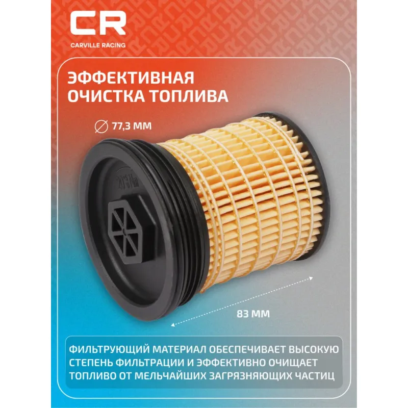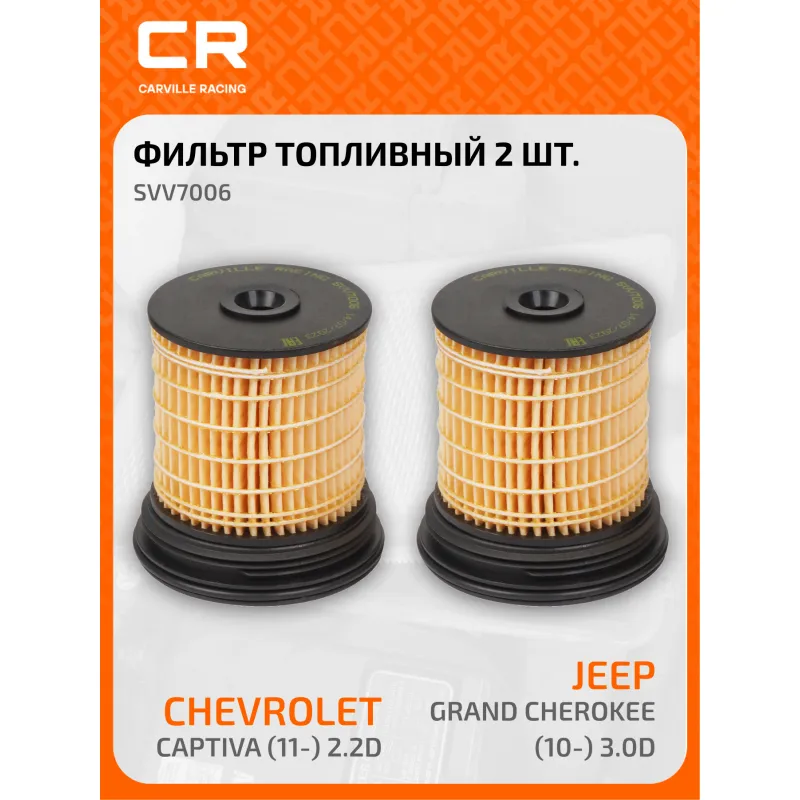 Фильтр топливный для автомобилей Chevrolet Captiva (11-) 2.2D/Jeep Grand Cherokee (10-) 3.0D Описание: Применяемость CHEVROLET CAPTIVA, CHRYSLER 300C, HOLDEN CAPTIVA, JEEP GRAND CHEROKEE, CHEROKEE, LANCIA THEMA, OPEL ANTARA, VAUXHALL ANTARA. Чтобы убедиться, что деталь подойдет на Ваш автомобиль, пожалуйста, отправьте через кнопку 'Задать вопрос' нам сообщение с VIN-номером вашего автомобиля. Топливные фильтры CARVILLE RACING эффективно очищают топливо от мельчайших загрязняющих частиц и воды, сохраняя работоспособность топливной аппаратуры автомобиля. Высокоэффективные фильтровальные материалы обеспечивают эффективное отделение самых мелких загрязнений и обладают высокой емкостью поглощения загрязнений. Благодаря минимальному сопротивлению обеспечивают наилучшую прокачиваемость топлива через фильтр. Благодаря снижению пульсации топлива в системе обеспечивается равномерная подача топлива. Прочный корпус обеспечивает полную герметичность, устойчив к пульсации давления и сжатию. Вся продукция CARVILLE RACING подвергается испытаниям в специализированных лабораториях, аккредитованных стандартами с ISO 17025: 2017 и CNAS-CL01. Основные показатели эффективности превосходят промышленные стандарты качества. Характеристики: Артикул: SVV7006 OEM номера: 04726067AA, K04726067AA, 4818693, 4820437, 95174479, 95492920 Внутренний диаметр, мм: 10 Высота, мм: 83 Наружный диаметр, мм: 77,3 Количество в комплекте, шт: 2 Исполнение фильтра: Фильтр-патрон Количество на автомобиль: 1 Комплектация: Фильтр топливный - 2 шт Гарантия: от 1 года.