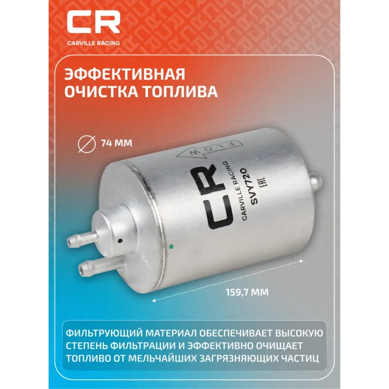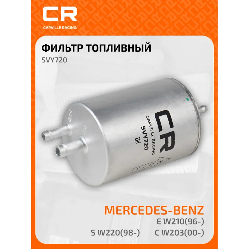 Фильтр топливный для автомобилей Mercedes-Benz C W203(00-)/ E W210(96-)/ S W220(98-)/ G W463(97-) Описание: Применяемость CHRYSLER CROSSFIRE, MERCEDES-BENZ SLK, SL, S-Class, GLK, G-Class, E-Class, CLK, CLC, C-Class, PUCH G-MODELL. Чтобы убедиться, что деталь подойдет на Ваш автомобиль, пожалуйста, отправьте через кнопку 'Задать вопрос' нам сообщение с VIN-номером вашего автомобиля. Топливные фильтры CARVILLE RACING эффективно очищают топливо от мельчайших загрязняющих частиц и воды, сохраняя работоспособность топливной аппаратуры автомобиля. Высокоэффективные фильтровальные материалы обеспечивают эффективное отделение самых мелких загрязнений и обладают высокой емкостью поглощения загрязнений. Благодаря минимальному сопротивлению обеспечивают наилучшую прокачиваемость топлива через фильтр. Благодаря снижению пульсации топлива в системе обеспечивается равномерная подача топлива. Прочный корпус обеспечивает полную герметичность, устойчив к пульсации давления и сжатию. Вся продукция CARVILLE RACING подвергается испытаниям в специализированных лабораториях, аккредитованных стандартами с ISO 17025: 2017 и CNAS-CL01. Основные показатели эффективности превосходят промышленные стандарты качества. Характеристики: Артикул: SVY720 OEM номера: 05097052AA, 5097052AA, K5097052AA, A 002 477 30 01, 002 477 30 01, 002 477 31 01, 002 477 64 01, A 002 477 31 01, A 002 477 64 01 Высота, мм: 159,7 Наружный диаметр, мм: 74 Диаметр впуск, мм: 8 Диаметр выпуск, мм: 8 Давление перепускного клапана, бар: 3.8 Исполнение фильтра: Прямоточный фильтр Количество на автомобиль: 1 Комплектация: Фильтр топливный - 1 шт Гарантия: от 1 года.