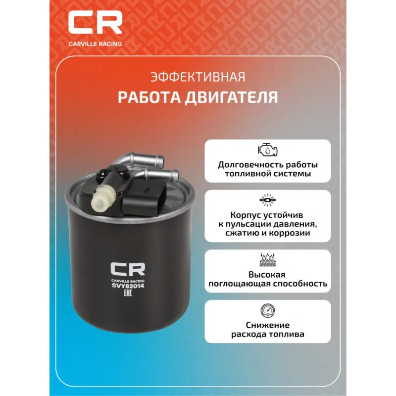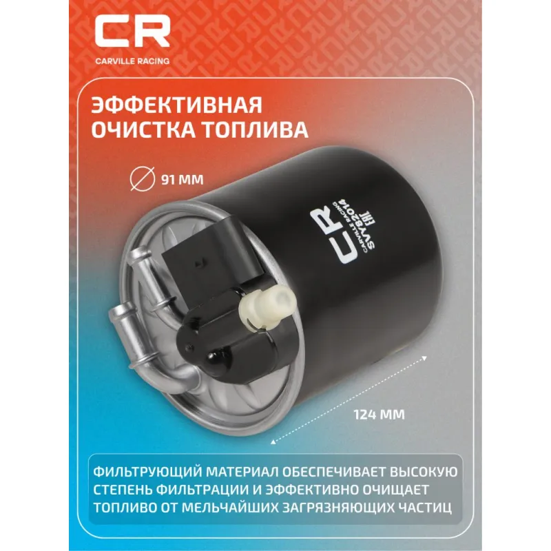 Фильтр топливный для автомобилей Mercedes-Benz C W204(06-)/E W212(09-)/S W221(09-)/GL X164(10-) 1.8D-3.0D Описание: Применяемость INFINITI QX, Q, MERCEDES-BENZ VITO, VIANO, S-Class, R-Class, M-Class, GLS, GLK, GLE, GLA, GL-Class, G-Class, E-Class, CLS, CLA, C-Class, B-Class, A-Class, GLC, SPRINTER. Чтобы убедиться, что деталь подойдет на Ваш автомобиль, пожалуйста, отправьте через кнопку 'Задать вопрос' нам сообщение с VIN-номером вашего автомобиля. Топливные фильтры CARVILLE RACING эффективно очищают топливо от мельчайших загрязняющих частиц и воды, сохраняя работоспособность топливной аппаратуры автомобиля. Высокоэффективные фильтровальные материалы обеспечивают эффективное отделение самых мелких загрязнений и обладают высокой емкостью поглощения загрязнений. Благодаря минимальному сопротивлению обеспечивают наилучшую прокачиваемость топлива через фильтр. Благодаря снижению пульсации топлива в системе обеспечивается равномерная подача топлива. Прочный корпус обеспечивает полную герметичность, устойчив к пульсации давления и сжатию. Вся продукция CARVILLE RACING подвергается испытаниям в специализированных лабораториях, аккредитованных стандартами с ISO 17025: 2017 и CNAS-CL01. Основные показатели эффективности превосходят промышленные стандарты качества. Характеристики: Артикул: SVY82014 OEM номера: 642 090 60 52, A 642 090 60 52, 642 090 31 52, 642 090 53 52, A 642 090 31 52, A 642 090 53 52, 16401-HG00A Исполнение фильтра: Прямоточный фильтр Количество на автомобиль: 1 Наружный диаметр, мм: 91 Высота, мм: 124 Диаметр впуск, мм: 10 Диаметр выпуск, мм: 8 Комплектация: Фильтр топливный - 1 шт Гарантия: от 1 года.