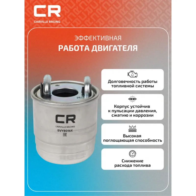 Фильтр топливный для автомобилей Mercedes GLK X204 (08-)/E W212 (09-) 2.1D Описание: Применяемость MERCEDES-BENZ SLK, S-Class, R-Class, M-Class, GLK, GL-Class, G-Class, E-Class, CLS, C-Class. Чтобы убедиться, что деталь подойдет на Ваш автомобиль, пожалуйста, отправьте через кнопку 'Задать вопрос' нам сообщение с VIN-номером вашего автомобиля. Топливные фильтры CARVILLE RACING эффективно очищают топливо от мельчайших загрязняющих частиц и воды, сохраняя работоспособность топливной аппаратуры автомобиля. Высокоэффективные фильтровальные материалы обеспечивают эффективное отделение самых мелких загрязнений и обладают высокой емкостью поглощения загрязнений. Благодаря минимальному сопротивлению обеспечивают наилучшую прокачиваемость топлива через фильтр. Благодаря снижению пульсации топлива в системе обеспечивается равномерная подача топлива. Прочный корпус обеспечивает полную герметичность, устойчив к пульсации давления и сжатию. Вся продукция CARVILLE RACING подвергается испытаниям в специализированных лабораториях, аккредитованных стандартами с ISO 17025: 2017 и CNAS-CL01. Основные показатели эффективности превосходят промышленные стандарты качества. Характеристики: Артикул: SVY8016X OEM номера: A 642 092 03 01, 642 092 03 01, 642 090 17 52, 642 090 18 52, 642 090 20 52, A 642 090 17 52, A 642 090 18 52, A 642 090 20 52 Высота, мм: 117.5 Наружный диаметр, мм: 92.5 Диаметр впуск, мм: 10 Диаметр выпуск, мм: 8 Исполнение фильтра: Прямоточный фильтр Количество на автомобиль: 1 Комплектация: Кольцо уплотнительное - 4 шт Фильтр топливный - 1 шт Гарантия: от 1 года.