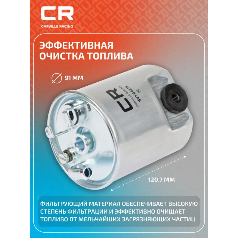 Фильтр топливный для автомобилей Mercedes Sprinter(00-)/V W638 (99-) 2.1D Описание: Применяемость MERCEDES-BENZ VITO, VANEO, V-Class, SPRINTER, A-Class. Чтобы убедиться, что деталь подойдет на Ваш автомобиль, пожалуйста, отправьте через кнопку 'Задать вопрос' нам сообщение с VIN-номером вашего автомобиля. Топливные фильтры CARVILLE RACING эффективно очищают топливо от мельчайших загрязняющих частиц и воды, сохраняя работоспособность топливной аппаратуры автомобиля. Высокоэффективные фильтровальные материалы обеспечивают эффективное отделение самых мелких загрязнений и обладают высокой емкостью поглощения загрязнений. Благодаря минимальному сопротивлению обеспечивают наилучшую прокачиваемость топлива через фильтр. Благодаря снижению пульсации топлива в системе обеспечивается равномерная подача топлива. Прочный корпус обеспечивает полную герметичность, устойчив к пульсации давления и сжатию. Вся продукция CARVILLE RACING подвергается испытаниям в специализированных лабораториях, аккредитованных стандартами с ISO 17025: 2017 и CNAS-CL01. Основные показатели эффективности превосходят промышленные стандарты качества. Характеристики: Артикул: SVY84218 OEM номера: 611 092 01 01, A 611 092 01 01 Высота, мм: 120.7 Наружный диаметр, мм: 91 Диаметр впуск, мм: 10 Дополнительная информация 2: С подсоединением датчика уровня воды Исполнение фильтра: Прямоточный фильтр Количество на автомобиль: 1 Комплектация: Фильтр топливный - 1 шт Гарантия: от 1 года.