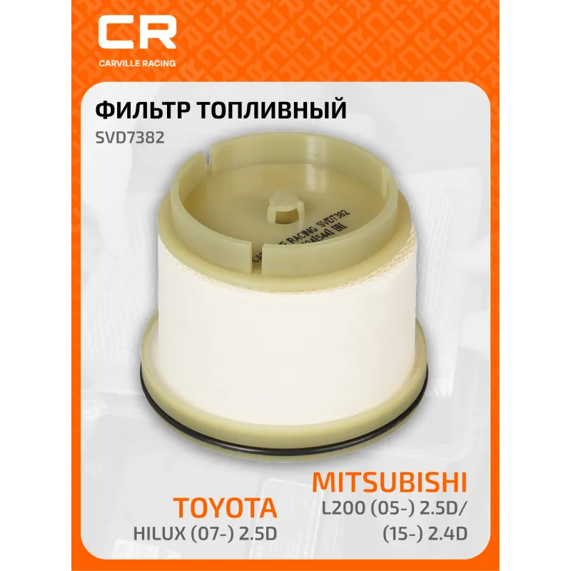 Фильтр топливный для автомобилей Mitsubishi L200 (05-) 2.5D/(15-) 2.4D/Toyota Hilux (07-) 2.5D Описание: Топливные фильтры CARVILLE RACING эффективно очищают топливо от мельчайших загрязняющих частиц и воды, сохраняя работоспособность топливной аппаратуры автомобиля. Высокоэффективные фильтровальные материалы обеспечивают эффективное отделение самых мелких загрязнений и обладают высокой емкостью поглощения загрязнений. - Применяемость фильтра для автомобилей: FIAT FULLBACK, ISUZU D-MAX, KB (D-MAX), LEXUS IS, MITSUBISHI L 200, TOYOTA HILUX, HIACE, FORTUNER.. Подбор по VIN-номеру вашего автомобиля - через кнопку 'Задать вопрос'. Специалист проверит применяемость и ответит вам. Благодаря минимальному сопротивлению обеспечивают наилучшую прокачиваемость топлива через фильтр. Благодаря снижению пульсации топлива в системе обеспечивается равномерная подача топлива. Прочный корпус обеспечивает полную герметичность, устойчив к пульсации давления и сжатию. Производство фильтров осуществляется на высокотехнологичных автоматизированных линиях, сертифицированных стандартом IATF 16949:2016. Вся продукция испытывается в испытательных лабораториях, аккредитованных стандартами по ISO 17025: 2017 и CNAS-CL01. Показатели эффективности превосходят промышленные стандарты качества. Фильтрующий элемент способен справиться с задачей грубой и тонкой очистки. Незаменимый компонент в автомобиле, обеспечивающий эффективную очистку топлива от загрязнений и поддержания топливной системы работоспособной надолго. Характеристики: Артикул: SVD7382 OEM номера: 6000605426, 6000605431, 8981017493, 8981596930, 8981824450, 8981941190, 98101749, 98159693, 98182455, 98194119, 1770A233, 1770A321, 23390-YZZA2, 1860400021, 23300-0L020, 233000L010, 233000L011, 233000L030, 233000L031, 233000L032, 2330030204, 2330087317, 233900L020, 23390YZZA1, 233900L010, 233900L030, 233900L040, 2339030200, 233900L041 Внутренний диаметр, мм: 9,5 Высота, мм: 76,5 Наружный диаметр, мм: 84 Высота 1, мм: 56 Наружный диаметр 2, мм: 71 Исполнение фильтра: Фильтр-патрон Количество на автомобиль: 1 Комплектация: Фильтр топливный - 1 шт Кольцо уплотнительное - 1 шт Гарантия: от 1 года.