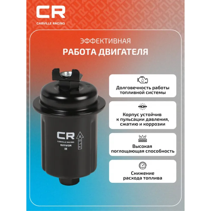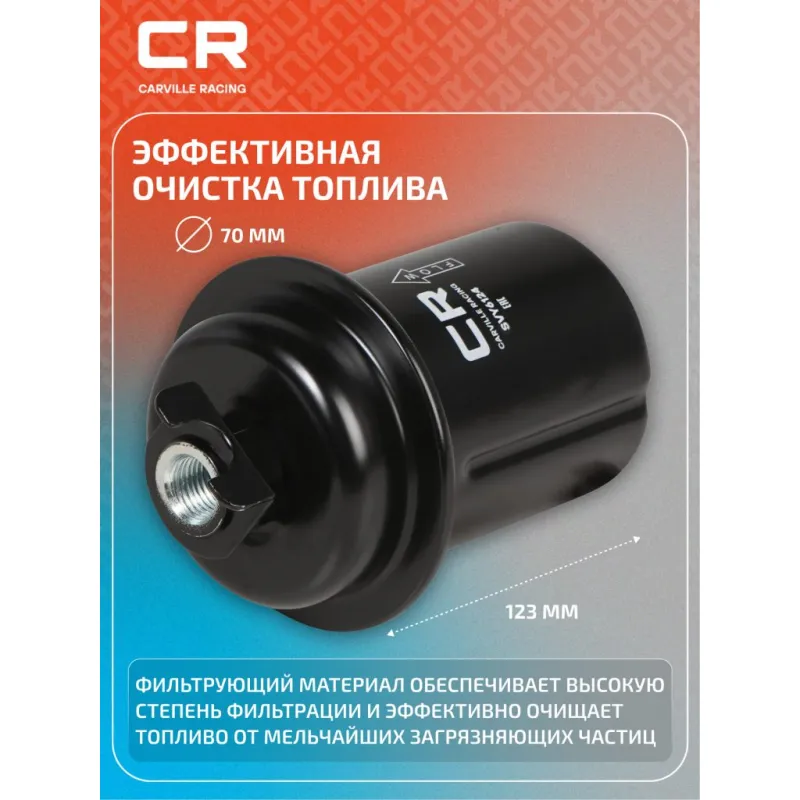 Фильтр топливный для автомобилей Toyota Camry (91-) 2.2i/Hyundai Accent (00-) 1.3i/1.5i Описание: Применяемость HYUNDAI ACCENT, S COUPE, MITSUBISHI TREDIA, PAJERO, LANCER, GALANT, CORDIA, COLT, TOYOTA CAMRY. Чтобы убедиться, что деталь подойдет на Ваш автомобиль, пожалуйста, отправьте через кнопку 'Задать вопрос' нам сообщение с VIN-номером вашего автомобиля. Топливные фильтры CARVILLE RACING эффективно очищают топливо от мельчайших загрязняющих частиц и воды, сохраняя работоспособность топливной аппаратуры автомобиля. Высокоэффективные фильтровальные материалы обеспечивают эффективное отделение самых мелких загрязнений и обладают высокой емкостью поглощения загрязнений. Благодаря минимальному сопротивлению обеспечивают наилучшую прокачиваемость топлива через фильтр. Благодаря снижению пульсации топлива в системе обеспечивается равномерная подача топлива. Прочный корпус обеспечивает полную герметичность, устойчив к пульсации давления и сжатию. Вся продукция CARVILLE RACING подвергается испытаниям в специализированных лабораториях, аккредитованных стандартами с ISO 17025: 2017 и CNAS-CL01. Основные показатели эффективности превосходят промышленные стандарты качества. Характеристики: Артикул: SVY6124 OEM номера: 23300-87724-000, 23300-87725, MB 348127, MB 504759, MB 504762, 23300-16270, 23300-19015, 23300-79305, 31911-22000, 31910-23500, 31911-22000AT, 1105100005 Высота, мм: 123 Наружный диаметр, мм: 70 Размер резьбы на выходе: M14x1,5-6H Исполнение фильтра: Прямоточный фильтр Размер резьбы на входе: M12x1,25-6H Количество на автомобиль: 1 Комплектация: Прокладка - 3 шт Фильтр топливный - 1 шт Гарантия: от 1 года.
