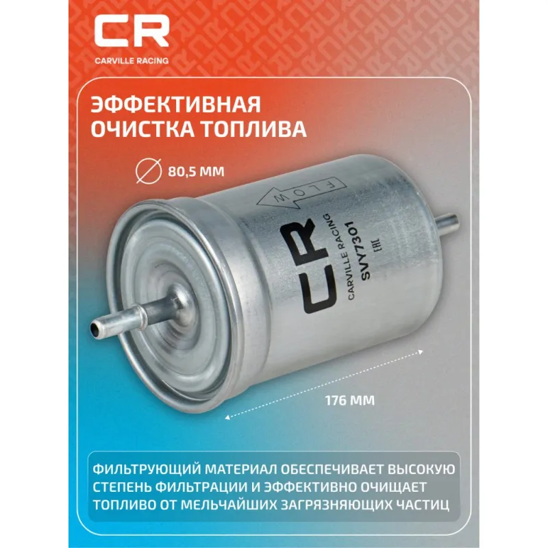 Фильтр топливный для автомобилей VAG Octavia (96-)/ Golf (97-)/ Bora (98-)/ A4 (00-) Описание: Применяемость AUDI TT, A8, A4, A3, CHERY SWEET (QQ), A3, KIMO / A1, INDIS, JAC S5, SEAT TOLEDO, LEON, EXEO, SKODA OCTAVIA, UAZ PATRIOT, VW T5, PHAETON, PASSAT, NEW BEETLE, GOLF, BORA, ZAZ FORZA. Чтобы убедиться, что деталь подойдет на Ваш автомобиль, пожалуйста, отправьте через кнопку 'Задать вопрос' нам сообщение с VIN-номером вашего автомобиля. Топливные фильтры CARVILLE RACING эффективно очищают топливо от мельчайших загрязняющих частиц и воды, сохраняя работоспособность топливной аппаратуры автомобиля. Высокоэффективные фильтровальные материалы обеспечивают эффективное отделение самых мелких загрязнений и обладают высокой емкостью поглощения загрязнений. Благодаря минимальному сопротивлению обеспечивают наилучшую прокачиваемость топлива через фильтр. Благодаря снижению пульсации топлива в системе обеспечивается равномерная подача топлива. Прочный корпус обеспечивает полную герметичность, устойчив к пульсации давления и сжатию. Вся продукция CARVILLE RACING подвергается испытаниям в специализированных лабораториях, аккредитованных стандартами с ISO 17025: 2017 и CNAS-CL01. Основные показатели эффективности превосходят промышленные стандарты качества. Характеристики: Артикул: SVY7301 OEM номера: 1J0 201 511 A Исполнение фильтра: Прямоточный фильтр Количество на автомобиль: 1 Наружный диаметр, мм: 80,5 Высота, мм: 176 Диаметр впуск, мм: 8 Диаметр выпуск, мм: 8 Комплектация: Фильтр топливный - 1 шт Гарантия: от 1 года.