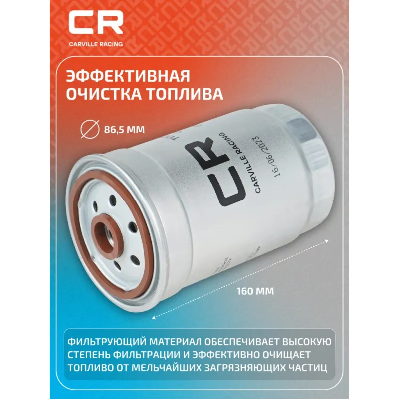 Фильтр топливный для автомобилей VAG Passat B5 (00-) 1.9D/Land Rover Discovery (98-) 2.5D Описание: Применяемость AUDI A6, A4, LAND ROVER DISCOVERY, DEFENDER, PEUGEOT BOXER, SKODA SUPERB, VW PASSAT. Чтобы убедиться, что деталь подойдет на Ваш автомобиль, пожалуйста, отправьте через кнопку 'Задать вопрос' нам сообщение с VIN-номером вашего автомобиля. Топливные фильтры CARVILLE RACING эффективно очищают топливо от мельчайших загрязняющих частиц и воды, сохраняя работоспособность топливной аппаратуры автомобиля. Высокоэффективные фильтровальные материалы обеспечивают эффективное отделение самых мелких загрязнений и обладают высокой емкостью поглощения загрязнений. Благодаря минимальному сопротивлению обеспечивают наилучшую прокачиваемость топлива через фильтр. Благодаря снижению пульсации топлива в системе обеспечивается равномерная подача топлива. Прочный корпус обеспечивает полную герметичность, устойчив к пульсации давления и сжатию. Вся продукция CARVILLE RACING подвергается испытаниям в специализированных лабораториях, аккредитованных стандартами с ISO 17025: 2017 и CNAS-CL01. Основные показатели эффективности превосходят промышленные стандарты качества. Характеристики: Артикул: SVY84211 OEM номера: XF5Z-9155-AA, 8D0 127 435, 3B0 127 400, 3B0 127 400 C, 8DO 127 435 Внутренний диаметр, мм: 62 Высота, мм: 160 Наружный диаметр, мм: 86.5 Размер резьбы на выходе: M10x1,5-6H Исполнение фильтра: Накручиваемый фильтр Размер резьбы на входе: M16x1,5-6H Количество на автомобиль: 1 Комплектация: Фильтр топливный - 1 шт Гарантия: от 1 года.