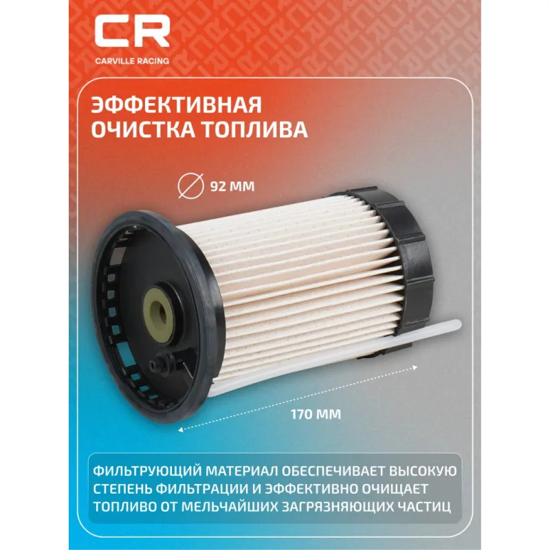 Фильтр топливный для автомобилей VAG Tiguan (16-) 2.0D Описание: Применяемость AUDI A3, Q3, Q2, CUPRA FORMENTOR, LEON, FORD TRANSIT CONNECT, SEAT ATECA, LEON, TARRACO, SKODA OCTAVIA, SUPERB, SCALA, KAROQ, KODIAQ, KAMIQ, VW GOLF, SCIROCCO, PASSAT, JETTA, BEETLE, TOURAN, TIGUAN, ARTEON, T-ROC, CADDY, T-CROSS / TAIGUN. Чтобы убедиться, что деталь подойдет на Ваш автомобиль, пожалуйста, отправьте через кнопку 'Задать вопрос' нам сообщение с VIN-номером вашего автомобиля. Топливные фильтры CARVILLE RACING эффективно очищают топливо от мельчайших загрязняющих частиц и воды, сохраняя работоспособность топливной аппаратуры автомобиля. Высокоэффективные фильтровальные материалы обеспечивают эффективное отделение самых мелких загрязнений и обладают высокой емкостью поглощения загрязнений. Благодаря минимальному сопротивлению обеспечивают наилучшую прокачиваемость топлива через фильтр. Благодаря снижению пульсации топлива в системе обеспечивается равномерная подача топлива. Прочный корпус обеспечивает полную герметичность, устойчив к пульсации давления и сжатию. Вся продукция CARVILLE RACING подвергается испытаниям в специализированных лабораториях, аккредитованных стандартами с ISO 17025: 2017 и CNAS-CL01. Основные показатели эффективности превосходят промышленные стандарты качества. Характеристики: Артикул: SVV8014 OEM номера: 2559 749, 5Q0 127 177 C, 5Q0 127 177 A, 5Q0 127 400 J Внутренний диаметр, мм: 9.5 Высота, мм: 170 Наружный диаметр, мм: 92 Исполнение фильтра: Фильтр-патрон Количество на автомобиль: 1 Комплектация: Фильтр топливный - 1 шт Гарантия: от 1 года.