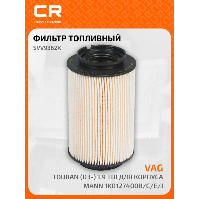 Фильтр топливный для автомобилей VAG Touran (03-) 1.9 TDI для корпуса Mann 1K0127400B/C/E/J Описание: Топливные фильтры CARVILLE RACING эффективно очищают топливо от мельчайших загрязняющих частиц и воды, сохраняя работоспособность топливной аппаратуры автомобиля. Высокоэффективные фильтровальные материалы обеспечивают эффективное отделение самых мелких загрязнений и обладают высокой емкостью поглощения загрязнений. - Применяемость фильтра для автомобилей: AUDI A3, SEAT TOLEDO, LEON, ALTEA, SKODA OCTAVIA, VW TOURAN, PHAETON, JETTA, GOLF, GOLF PLUS, CADDY, PASSAT.. Подбор по VIN-номеру вашего автомобиля - через кнопку 'Задать вопрос'. Специалист проверит применяемость и ответит вам. Благодаря минимальному сопротивлению обеспечивают наилучшую прокачиваемость топлива через фильтр. Благодаря снижению пульсации топлива в системе обеспечивается равномерная подача топлива. Прочный корпус обеспечивает полную герметичность, устойчив к пульсации давления и сжатию. Производство фильтров осуществляется на высокотехнологичных автоматизированных линиях, сертифицированных стандартом IATF 16949:2016. Вся продукция испытывается в испытательных лабораториях, аккредитованных стандартами по ISO 17025: 2017 и CNAS-CL01. Показатели эффективности превосходят промышленные стандарты качества. Фильтрующий элемент способен справиться с задачей грубой и тонкой очистки. Незаменимый компонент в автомобиле, обеспечивающий эффективную очистку топлива от загрязнений и поддержания топливной системы работоспособной надолго. Характеристики: Артикул: SVV9362X OEM номера: 1K0 127 434 A, 1K0 127 177, 1K0 127 177 A, 1K0 127 400 C, 1K0 127 400 E, 1K0 127 400 K, 1K0 127 434 Внутренний диаметр, мм: 38 Высота, мм: 142 Наружный диаметр, мм: 82.5 Исполнение фильтра: Фильтр-патрон Количество на автомобиль: 1 Комплектация: Приспособление для удаленя фильтра - 1 шт Прокладка - 2 шт Фильтр топливный - 1 шт Гарантия: от 1 года.