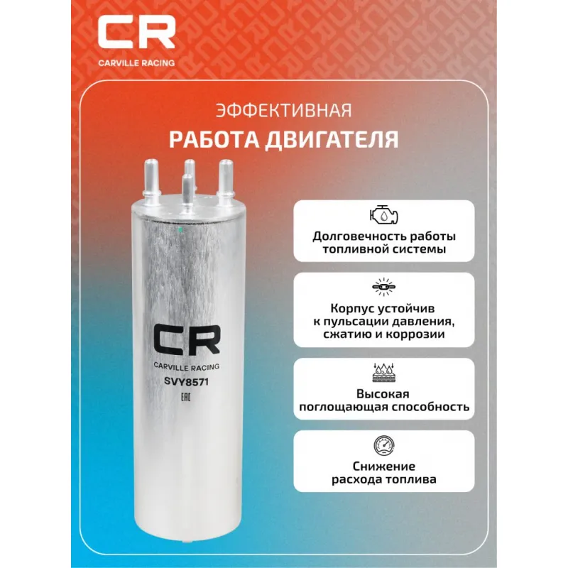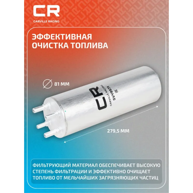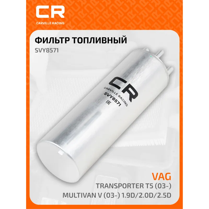 Фильтр топливный для автомобилей VAG Transporter T5 (03-)/Multivan V (03-) 1.9D/2.0D/2.5D Описание: Применяемость MULTICAR M27, Tremo, VW T6, T5, TOUAREG. Чтобы убедиться, что деталь подойдет на Ваш автомобиль, пожалуйста, отправьте через кнопку 'Задать вопрос' нам сообщение с VIN-номером вашего автомобиля. Топливные фильтры CARVILLE RACING эффективно очищают топливо от мельчайших загрязняющих частиц и воды, сохраняя работоспособность топливной аппаратуры автомобиля. Высокоэффективные фильтровальные материалы обеспечивают эффективное отделение самых мелких загрязнений и обладают высокой емкостью поглощения загрязнений. Благодаря минимальному сопротивлению обеспечивают наилучшую прокачиваемость топлива через фильтр. Благодаря снижению пульсации топлива в системе обеспечивается равномерная подача топлива. Прочный корпус обеспечивает полную герметичность, устойчив к пульсации давления и сжатию. Вся продукция CARVILLE RACING подвергается испытаниям в специализированных лабораториях, аккредитованных стандартами с ISO 17025: 2017 и CNAS-CL01. Основные показатели эффективности превосходят промышленные стандарты качества. Характеристики: Артикул: SVY8571 OEM номера: 7H0 127 401 B, 7H0 127 401, 7H0 127 401 A, 7H0 127 401 F Наружный диаметр, мм: 81 Диаметр впуск, мм: 10 Диаметр выпуск, мм: 8 Исполнение фильтра: Прямоточный фильтр Количество на автомобиль: 1 Высота, мм: 279.5 Комплектация: Фильтр топливный - 1 шт Гарантия: от 1 года.