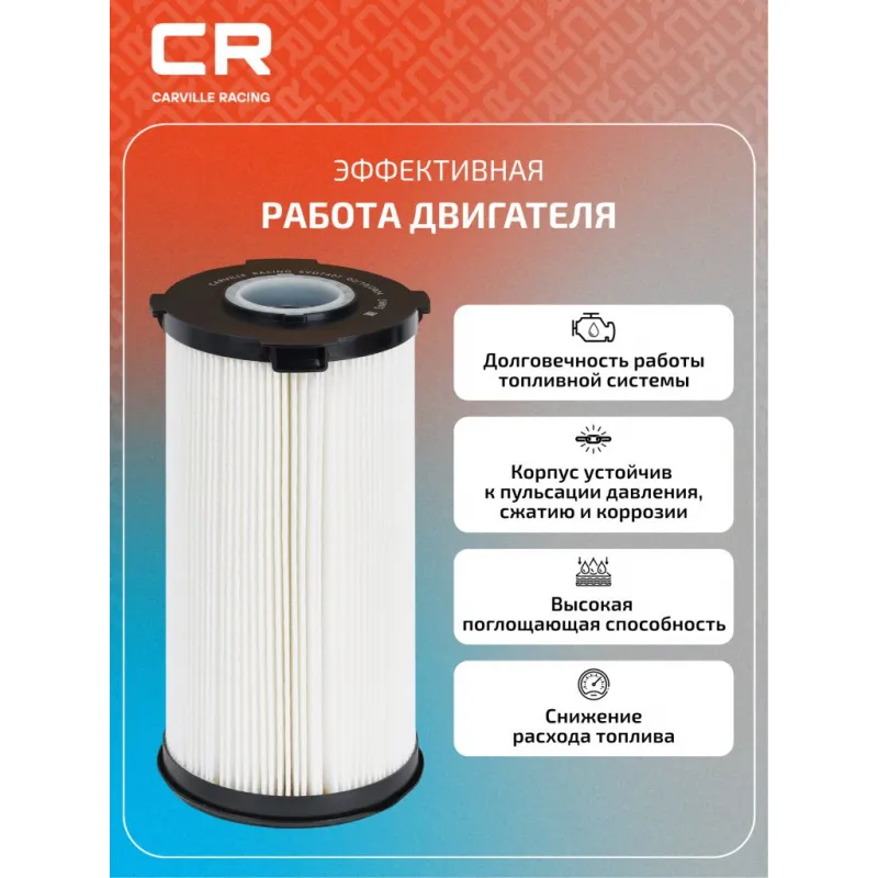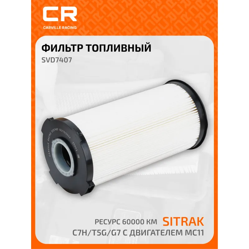 Фильтр топливный грубой очистки для автомобилей Sitrak C7H/T5G/G7 с двигателем MC11, ресурс 60000км Описание: Топливный фильтр грубой очистки топлива CARVILLE RACING эффективно очищают топливо от мельчайших загрязняющих частиц и воды, сохраняя работоспособность топливной аппаратуры автомобиля. Высокоэффективные фильтровальные материалы обеспечивают эффективное отделение самых мелких загрязнений и обладают высокой емкостью поглощения загрязнений. - Применяемость фильтра для автомобилей: SITRAK C7H.. Подбор по VIN-номеру вашего автомобиля - через кнопку 'Задать вопрос'. Специалист проверит применяемость и ответит вам. Благодаря минимальному сопротивлению обеспечивают наилучшую прокачиваемость топлива через фильтр. Благодаря снижению пульсации топлива в системе обеспечивается равномерная подача топлива. Прочный корпус обеспечивает полную герметичность, устойчив к пульсации давления и сжатию. Производство фильтров осуществляется на высокотехнологичных автоматизированных линиях, сертифицированных стандартом IATF 16949:2016. Вся продукция испытывается в испытательных лабораториях, аккредитованных стандартами по ISO 17025: 2017 и CNAS-CL01. Показатели эффективности превосходят промышленные стандарты качества. Фильтрующий элемент способен справиться с задачей грубой и тонкой очистки. Незаменимый компонент в автомобиле, обеспечивающий эффективную очистку топлива от загрязнений и поддержания топливной системы работоспособной надолго. Характеристики: Артикул: SVD7407 OEM номера: WG9925550966, WG9925550966 Внутренний диаметр, мм: 48 Высота, мм: 253 Наружный диаметр, мм: 124.5 Исполнение фильтра: Фильтр-патрон Количество на автомобиль: 1 Комплектация: Фильтр топливный - 1 шт Кольцо уплотнительное - 1 шт Гарантия: от 1 года.