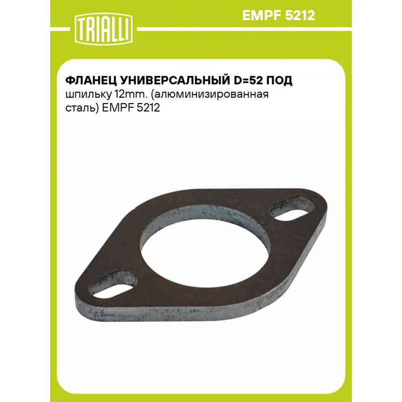 Фланец универсальный d=52 под шпильку 12mm. (алюминизированная сталь) Характеристики: Артикул: EMPF 5212 Количество на автомобиль: 1 Гарантийный срок: 2 года/60 тыс. Длина изделия, мм: 120 Материал: Ст3 Диаметр, мм: 52 Толщина стенок: 8 Товарная линейка: BLACK Дополнительная информация: Этикетка изделия может отличаться от представленной на фото Комплектация: Фланец - 1 шт Гарантия: от 1 года.