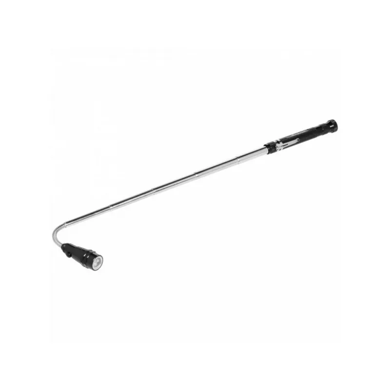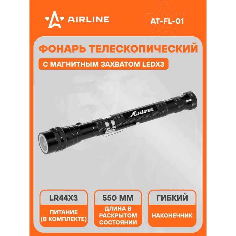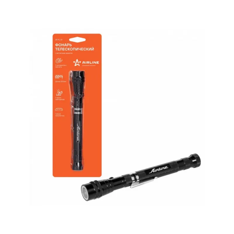 Фонарь телескопический с магнитным захватом Описание: Фонарь телескопический светодиодный на батарейках AT-FL-01 от бренда AIRLINE предназначен для использования в бытовых и профессиональных целях, позволяет подвести свет к труднодоступным местам. Крепится на магните к металлической поверхности. Оснащён тремя яркими светодиодами. Вытягивается до длины 550мм. Имеет гибкий наконечник с неодимовым магнитом, для извлечения крепежа из самых труднодоступных мест. Используется: в автомобиле, в автобусе, в грузовике, на рыбалке, на охоте, в походе. Технические особенности и преимущества: Питание - батарейка LR44x3 (4.5В) в комплекте; Кол-во светодиодов - 3; 2 неодимовых магнита; Длина в раскрытом состоянии - 550 мм; Гибкий наконечник; Ремешок крепление на запястье; Ударопрочный, влагозащитный, прорезиненный корпус; Превосходный аксессуар для каждого транспортного средства; Мощный фонарик светильник идеальное решение для активного отдыха и повседневного использования, для огорода и дачи, для охоты и для рыбалки. Ручной спортивный туристический рабочий кемпинговый автомобильный фонарь идеален для того, чтобы брать его с собой и хранить в автомобиле. Поможет в условиях плохой видимости во время ремонта на дороге или в гараже. Наш спортивный инвентарь подойдет для спорта, для туризма и похода, охоты и рыбалки. Нужный подарок автомобилисту, мужчине и женщине, автолюбителю, папе, отцу, брату, любимому, мужу, парню и другу, на день рождения, Новый год, 23 февраля. Товар официального производителя AIRLINE. Характеристики: Артикул: AT-FL-01 Питание: батарейка LR44x3 (4.5В) Кол-во светодиодов: 3 Тип источника света: Светодиод Комплектация: Фонарь - 1 шт Гарантия: от 1 года.