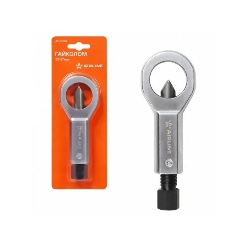 Гайколом 22-36мм Описание: Профессиональный инструмент для быстрого и безопасного разрушения заржавевших или повреждённых гаек. Позволяет легко снимать гайки, не повреждая резьбу на болте или шпильке. Характеристики: Артикул: ATHD004 Диапазон применения, мм: 22-36 Материал изготовления: Сталь Комплектация: Гайколом 22-36 - 1 шт Гарантия: от 1 года.