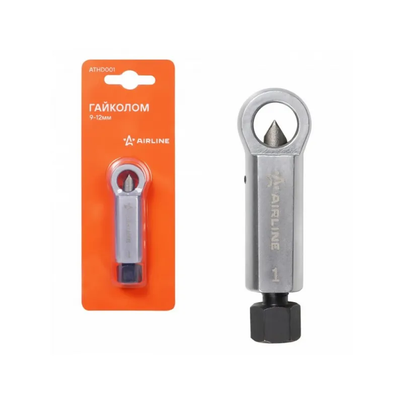 Гайколом 9-12мм Описание: Профессиональный инструмент для быстрого и безопасного разрушения заржавевших или повреждённых гаек. Позволяет легко снимать гайки, не повреждая резьбу на болте или шпильке. Характеристики: Артикул: ATHD001 Материал изготовления: Сталь Диапазон применения, мм: 9-12 Комплектация: Гайколом 9-12 мм - 1 шт Гарантия: от 1 года.