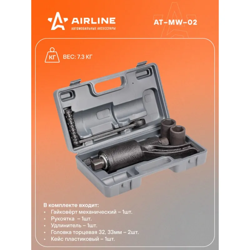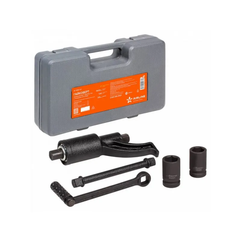 Гайковерт механич. 1" 3600Нм 1:64 310мм с головками 32 и 33мм пласт. кейс Описание: Механический гайковерт 3600 Нм 1" Airline AT-MW-02, в пластиковом кейсе - незаменимый инструмент как для домашнего, так и для профессионального использования, представляет собой многоступенчатый редуктор, который многократно увеличивает крутящий момент прилагаемый к рукоятке. Таким образом, без больших усилий оператора можно отвинтить гайки крепления колёс на грузовиках и специальной технике. Инструмент выполнен из прочных и качественных материалов, обладающих надежностью и долговечностью. Гайковерт поставляется в удобном пластиковом кейсе для рационального хранения и транспортировки. Преимущества Airline AT-MW-02: *Кейс для хранения и переноски. *Инструмент устойчив к механическому износу. *Низкая пожаро- и взрывоопасность рабочего процесса благодаря работе на сжатом воздухе. Мощный и надежный, он пригодится для работы в мастерских и автосервисах, а также для бытового ремонта в домашнем гараже. Гайковерт механический - это отличный вариант подарка любимому мужу, мужчине другу, папе, отчиму или коллеге! Характеристики: Артикул: AT-MW-02 OEM номера: 536581, 40332, LSW2 Максимальный момент силы, Нм: 3600 Длина гайковерта, мм: 310 Длина удлинителя, мм: 265 Твердость шестерней, HRC: 44-48 Передаточное число: 1:64 Размер присоединительного квадрата: 1" Комплектация: Гайковёрт - 1 шт Рукоятка - 1 шт Удлинитель - 1 шт Головка торцевая 32, 33мм - 2 шт Кейс пластиковый - 1 шт Гарантия: от 1 года.