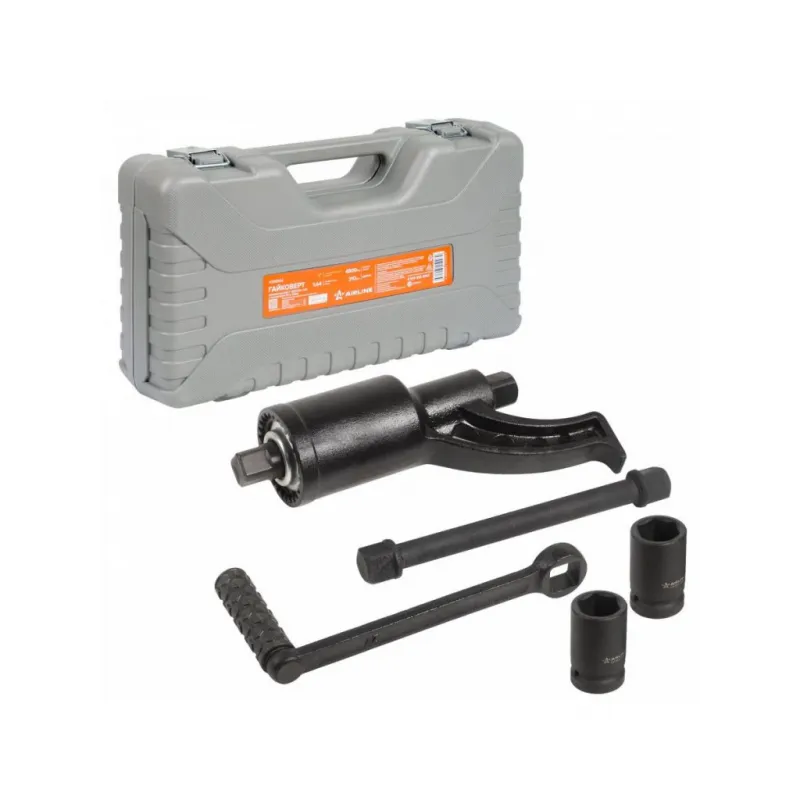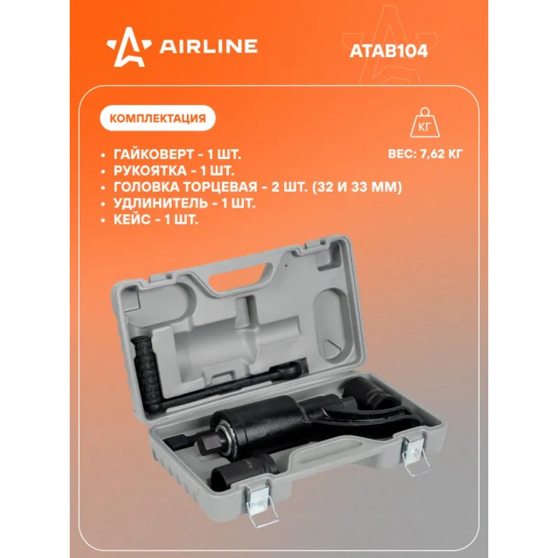 Гайковерт механич. 1" 4800Нм 1:64 310мм с головками 32 и 33мм пласт. кейс Описание: Механический гайковерт 4800 Нм 1"DR Airline ATAB104, в пластиковом кейсе представляет собой многоступенчатый редуктор, который многократно увеличивает крутящий момент прилагаемый к рукоятке. Таким образом, без больших усилий оператора можно отвинтить гайки крепления колёс на грузовиках и специальной технике. Инструмент выполнен из прочных и качественных материалов, обладающих надежностью и долговечностью. Гайковерт поставляется в удобном пластиковом кейсе для рационального хранения и транспортировки. Преимущества Airline ATAB104: *Кейс для хранения и переноски. *Инструмент устойчив к механическому износу. *Головка торцевая 2 шт, рукоятка, удлинитель, кейс в комплекте. Гайковерт механический - это отличный вариант подарка любимому мужу, мужчине другу, папе, отчиму или коллеге! Характеристики: Артикул: ATAB104 Размер присоединительного квадрата: 1" Длина удлинителя, мм: 300 Твердость шестерней, HRC: 44-48 Длина гайковерта, мм: 310 Максимальный момент силы, Нм: 4800 Передаточное число: 1:64 Комплектация: Гайковёрт - 1 шт Удлинитель - 1 шт Рукоятка - 1 шт Головка торцевая - 2 шт Кейс - 1 шт Гарантия: от 1 года.