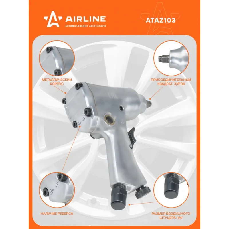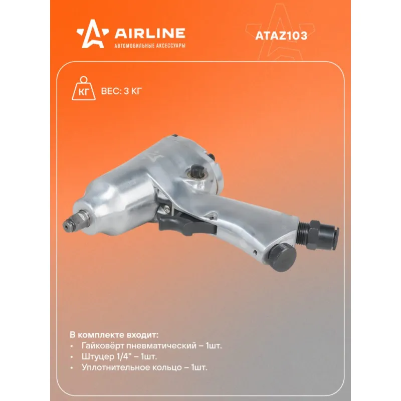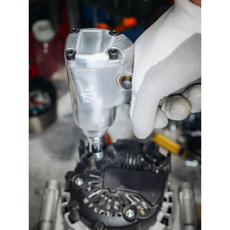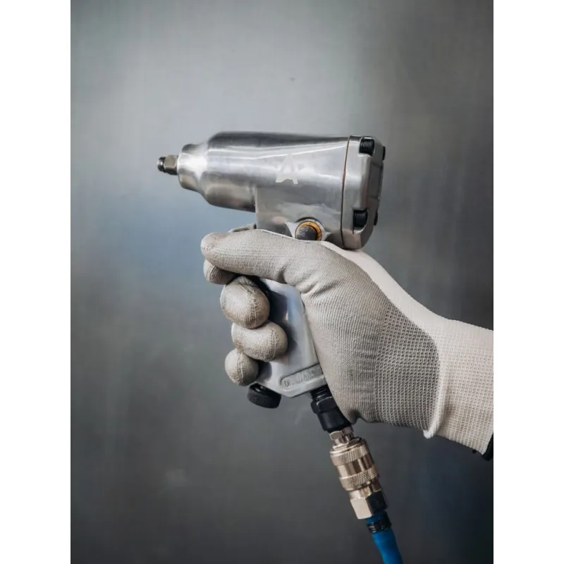 Гайковерт пневматический ударный 3/8"DR 100Нм Описание: Пневматический ударный гайковерт 100 Нм Airline ATAZ103 - незаменимый инструмент как для домашнего, так и для профессионального использования, применяется для механизации слесарно-монтажных работ для затяжки (закручивания) или ослабления (откручивания) особо нагруженных и осложненных резьбовых соединений с высокой скоростью, мощностью, дифференцированным крутящим моментом и низкими затратами энергии и физических сил оператора. Благодаря ударному механизму Twin Hammer изделие способно откручивать заржавевшие крепежные элементы. Корпус инструмента отличается повышенной прочностью и устойчивостью к механическим повреждениям. Работа на сжатом воздухе обеспечивает больший рабочий ресурс по сравнению с электродвигателем. Преимущества Airline ATAZ103: *Высокий момент затяжки. *Наличие удара - для мгновенного откручивания приржавевших и закисших гаек. *Инструмент устойчив к механическому износу. *Низкая пожаро- и взрывоопасность рабочего процесса благодаря работе на сжатом воздухе. Мощный и надежный, он пригодится для работы в мастерских и автосервисах, а также для бытового ремонта в домашнем гараже. Гайковерт ударный - это отличный вариант подарка любимому мужу, мужчине другу, папе, отчиму или коллеге! Характеристики: Артикул: ATAZ103 Вес, кг: 1 Присоединительный квадрат: 3/8" Тип ударного механизма: Двойной молот (Twin Hammer) Диаметр присоединительного штуцера: 1/4" Частота вращения вала, об/мин: 10000 Рабочее давление воздуха, АТМ: 6.3 Расход воздуха, л/мин: 99 Макс. крутящий момент, Нм: 100 Комплектация: Гайковёрт - 1 шт Штуцер быстросъёмный 1/4" - 1 шт Паспорт - 1 шт Уплотнительное кольцо - 1 шт Гарантия: от 1 года.