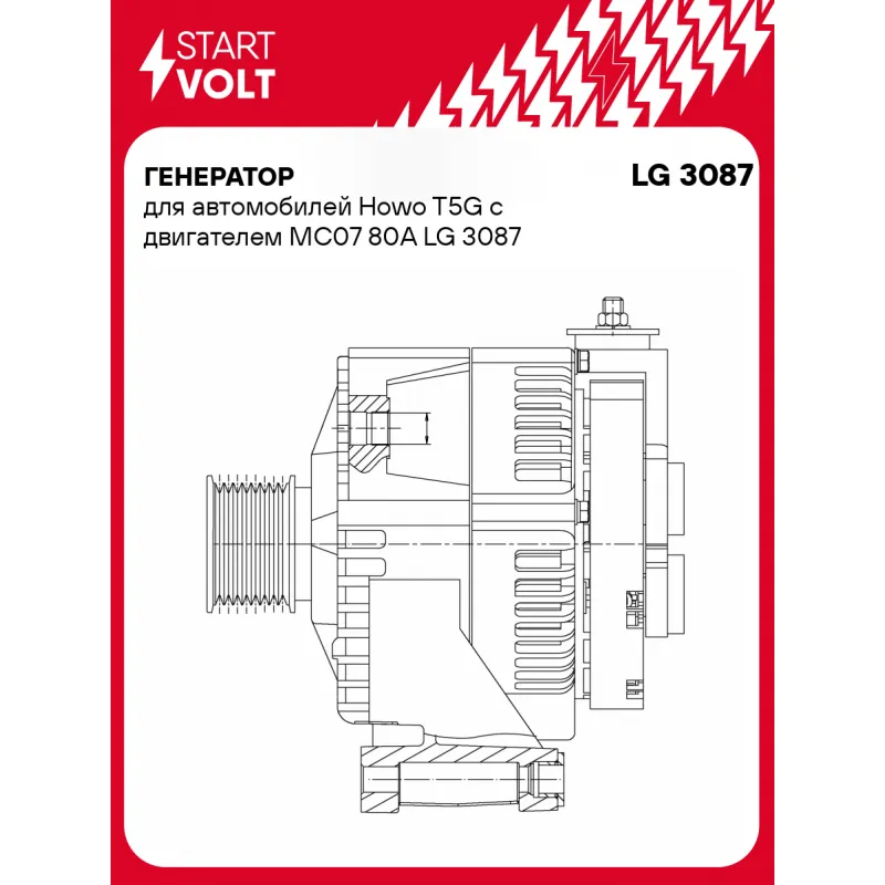 Генератор для автомобилей Howo T5G с двигателем MC07 80А Характеристики: Артикул: LG 3087 OEM номера: 082V26101-7278 Направление вращения: по часовой стрелке Выходной ток, А: 80 Напряжение, В: 28 Вылет шкива, мм: 41,8 Тип подключения: L-W-B+ Диаметр шкива, мм: 48 Ременной шкив: с многоручейковым ручейковым шкивом Количество креп... Читать полностью →
