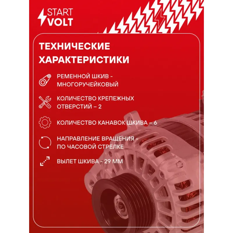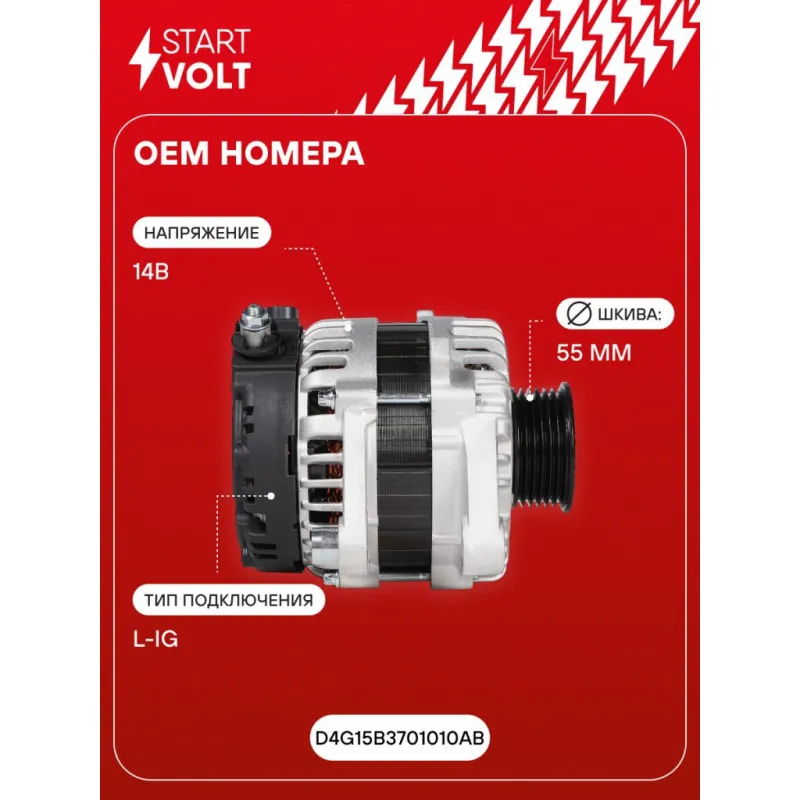 Генератор для автомобилей Chery Tiggo 4 (18-) 2.0i/Tiggo 2 (16-) 1.5i 85A Описание: Оригинальный генератор STARTVOLT LG 2716 рассчитан на ток 85 А и напряжение 14 В. Изготовлен аналогично оригинальной конструкции. с многоручейковым ручейковым шкивом шкив (6PK, диаметр 55 мм) полностью совместим с оригинальными агрегатами. Подходит для автомобилей: CHERY TIGGO 3, TIGGO 5.. Если у вас есть вопросы по применяемости, мы всегда готовы помочь вам с подбором по VIN-НОМЕРУ ВАШЕГО АВТОМОБИЛЯ. Преимущества: - Полностью соответствует оригинальным узлам; - Высокоточная сборка с пооперационным контролем качества; - Каждый генератор проходит стендовое тестирование — протокол в комплекте; - Надёжность в любых условиях эксплуатации; - STARTVOLT 15 лет на рынке автоэлектрики — нам доверяют профессионалы; - Гарантия 2 года; - Сертифицирован по стандарту EAC (ЕАЭС) — соответствует требованиям безопасности и качества; Автомобильный генератор в сборе — готов к установке. Отличный выбор для надежной замены штатного генератора. Характеристики: Артикул: LG 2716 OEM номера: D4G15B3701010AB Напряжение, В: 14 Выходной ток, А: 85 Тип подключения: L-IG Диаметр шкива, мм: 55 Ременной шкив: с многоручейковым ручейковым шкивом Количество крепежных отверстий: 2 Количество канавок шкива: 6 Направление вращения: По часовой стрелке Вылет шкива, мм: 29 Подходит для авто: Chery Tiggo 2 (16-) Для проверки применяемости отправьте VIN автомобиля через вкладку "Есть вопросы о товаре?" Комплектация: Генератор - 1 шт Индивидуальный технический паспорт изделия (с фирменным ID) - 1 шт Паспорт изделия/гарантийный талон - 1 шт Гарантия: от 1 года.