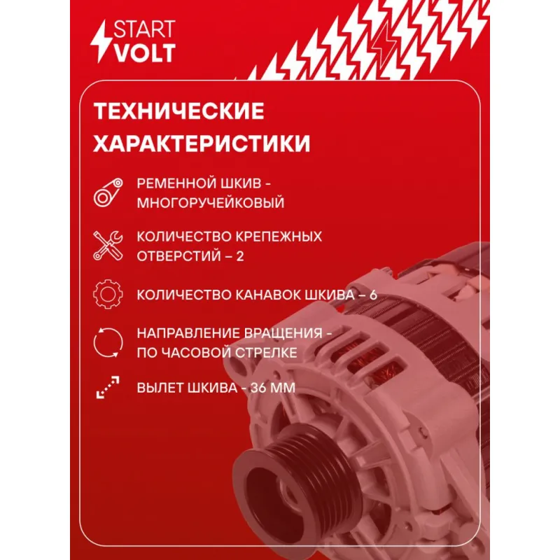 Генератор для автомобилей Chevrolet Lacetti (04-)/Aveo T250 (08-) 1.4i/1.6i 85A Описание: Оригинальный генератор STARTVOLT LG 0550 рассчитан на ток 85 А и напряжение 14 В. Изготовлен аналогично оригинальной конструкции. с многоручейковым ручейковым шкивом шкив (6PK, диаметр 50 мм) полностью совместим с оригинальными агрегатами. Подходит для автомобилей: CHEVROLET LACETTI, AVEO, NUBIRA, DAEWOO AVEO / KALOS, LACETTI, NUBIRA.. Если у вас есть вопросы по применяемости, мы всегда готовы помочь вам с подбором по VIN-НОМЕРУ ВАШЕГО АВТОМОБИЛЯ. Преимущества: - Полностью соответствует оригинальным узлам; - Высокоточная сборка с пооперационным контролем качества; - Каждый генератор проходит стендовое тестирование — протокол в комплекте; - Надёжность в любых условиях эксплуатации; - STARTVOLT 15 лет на рынке автоэлектрики — нам доверяют профессионалы; - Гарантия 2 года; - Сертифицирован по стандарту EAC (ЕАЭС) — соответствует требованиям безопасности и качества; Автомобильный генератор в сборе — готов к установке. Отличный выбор для надежной замены штатного генератора. Характеристики: Артикул: LG 0550 OEM номера: 96540541, 96954112, 96499043 Напряжение, В: 14 Выходной ток, А: 85 Тип подключения: L-IG-S Диаметр шкива, мм: 50 Ременной шкив: с многоручейковым ручейковым шкивом Количество крепежных отверстий: 2 Количество канавок шкива: 6 Направление вращения: По часовой стрелке Вылет шкива, мм: 36 Сопутствующий товар: Регуляторы напряжения генераторов: VRR 0550 Сопутствующий товар: Мосты диодные генераторов: VDB 0550 Подходит для авто: Chevrolet Aveo T250 (06-), Aveo T200 (02-), Lacetti (02-) Для проверки применяемости отправьте VIN автомобиля через вкладку "Есть вопросы о товаре?" Комплектация: Генератор - 1 шт Индивидуальный технический паспорт изделия (с фирменным ID) - 1 шт Паспорт изделия/гарантийный талон - 1 шт Гарантия: от 1 года.