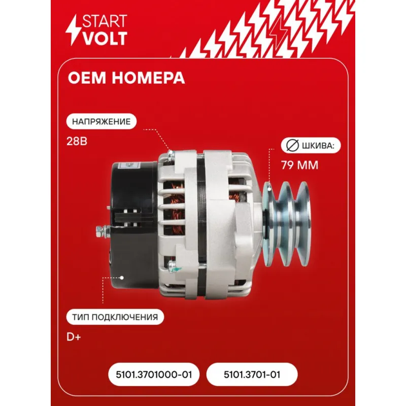 Генератор для автомобилей ГАЗ 33081/33086/3309 с дв. ММЗ Д-245.1 35A Описание: Оригинальный генератор STARTVOLT LG 0303X рассчитан на ток 35 А и напряжение 28 В. Изготовлен аналогично оригинальной конструкции. с ремённым шкивом шкив (диаметр 79 мм) полностью совместим с оригинальными агрегатами. Подходит для автомобилей: GAZ 3308, SADKO, 3309, 4501, 4301.. Если у вас есть вопросы по применяемости, мы всегда готовы помочь вам с подбором по VIN-НОМЕРУ ВАШЕГО АВТОМОБИЛЯ. Преимущества: - Полностью соответствует оригинальным узлам; - Высокоточная сборка с пооперационным контролем качества; - Каждый генератор проходит стендовое тестирование — протокол в комплекте; - Надёжность в любых условиях эксплуатации; - STARTVOLT 15 лет на рынке автоэлектрики — нам доверяют профессионалы; - Гарантия 2 года; - Сертифицирован по стандарту EAC (ЕАЭС) — соответствует требованиям безопасности и качества; Автомобильный генератор в сборе — готов к установке. Отличный выбор для надежной замены штатного генератора. Характеристики: Артикул: LG 0303X OEM номера: 5101.3701000-01, 5101.3701-01 Напряжение, В: 28 Выходной ток, А: 35 Тип подключения: D+ Диаметр шкива, мм: 79 Ременной шкив: с ремённым шкивом Количество крепежных отверстий: 2 Количество канавок шкива: 2 Направление вращения: По часовой стрелке Вылет шкива, мм: 44 Подходит для авто: ГАЗ 33097, 3308, 4301, 4501 Для проверки применяемости отправьте VIN автомобиля через вкладку "Есть вопросы о товаре?" Комплектация: Индивидуальный технический паспорт изделия (с фирменным ID) - 1 шт Генератор - 1 шт Паспорт изделия/гарантийный талон - 1 шт Гарантия: от 1 года.