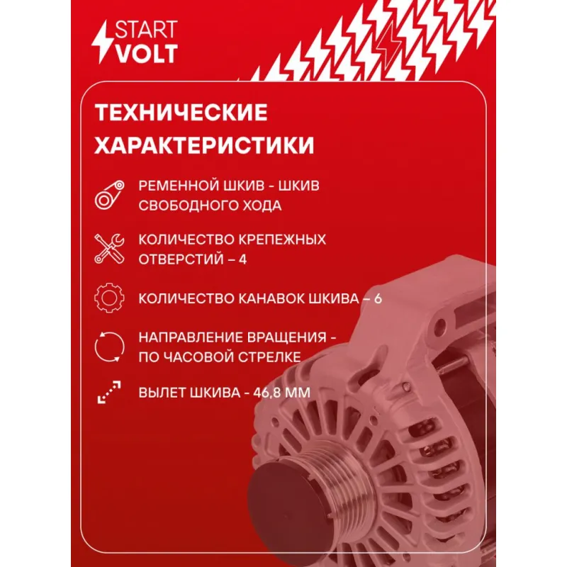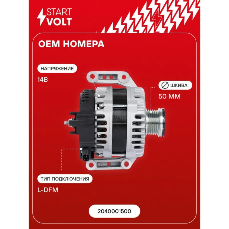 Генератор для автомобилей Geely Atlas (18-) 1.8T 130A Описание: Оригинальный генератор STARTVOLT LG 2714 рассчитан на ток 130 А и напряжение 14 В. Изготовлен аналогично оригинальной конструкции. Шкив свободного хода (6PK, диаметр 50 мм) полностью совместим с оригинальными агрегатами. Подходит для автомобилей: GEELY ATLAS.. Если у вас есть вопросы по применяемости, мы всегда готовы помочь вам с подбором по VIN-НОМЕРУ ВАШЕГО АВТОМОБИЛЯ. Преимущества: - Полностью соответствует оригинальным узлам; - Высокоточная сборка с пооперационным контролем качества; - Каждый генератор проходит стендовое тестирование — протокол в комплекте; - Надёжность в любых условиях эксплуатации; - STARTVOLT 15 лет на рынке автоэлектрики — нам доверяют профессионалы; - Гарантия 2 года; - Сертифицирован по стандарту EAC (ЕАЭС) — соответствует требованиям безопасности и качества; Автомобильный генератор в сборе — готов к установке. Отличный выбор для надежной замены штатного генератора. Характеристики: Артикул: LG 2714 OEM номера: 2040001500 Направление вращения: По часовой стрелке Выходной ток, А: 130 Напряжение, В: 14 Вылет шкива, мм: 46,8 Тип подключения: L-DFM Диаметр шкива, мм: 50 Ременной шкив: с ременным шкивом свободного хода Количество крепежных отверстий: 4 Количество канавок шкива: 6 Комплектация: Генератор - 1 шт Индивидуальный технический паспорт изделия (с фирменным ID) - 1 шт Паспорт изделия/гарантийный талон - 1 шт Гарантия: от 1 года.