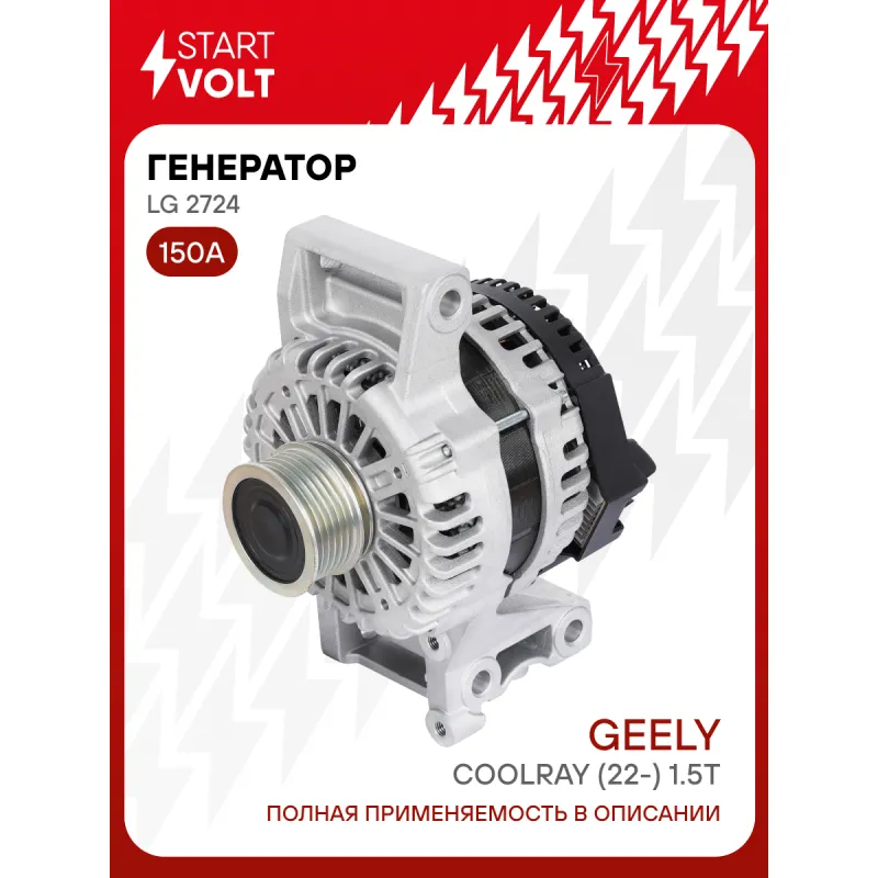 Генератор для автомобилей Geely Coolray (22-) 1.5T 150A Описание: Оригинальный генератор STARTVOLT LG 2724 рассчитан на ток 150 А и напряжение 14 В. Изготовлен аналогично оригинальной конструкции. Шкив свободного хода (6PK, диаметр 57 мм) полностью совместим с оригинальными агрегатами. Подходит для автомобилей: GEELY COOLRAY, CITYRAY.. Если у вас есть вопросы по применяемости, мы всегда готовы помочь вам с подбором по VIN-НОМЕРУ ВАШЕГО АВТОМОБИЛЯ. Преимущества: - Полностью соответствует оригинальным узлам; - Высокоточная сборка с пооперационным контролем качества; - Каждый генератор проходит стендовое тестирование — протокол в комплекте; - Надёжность в любых условиях эксплуатации; - STARTVOLT 15 лет на рынке автоэлектрики — нам доверяют профессионалы; - Гарантия 2 года; - Сертифицирован по стандарту EAC (ЕАЭС) — соответствует требованиям безопасности и качества; Автомобильный генератор в сборе — готов к установке. Отличный выбор для надежной замены штатного генератора. Характеристики: Артикул: LG 2724 OEM номера: 0126312222, 2040015000, JFZ1317, 5511704102, JFZ1317A, 2040014900, 5511695955, 5511699304, 5511704103 Направление вращения: По часовой стрелке Выходной ток, А: 150 Напряжение, В: 14 Вылет шкива, мм: 75,5 Тип подключения: COM/LIN Диаметр шкива, мм: 57 Ременной шкив: с ременным шкивом свободного хода Количество крепежных отверстий: 3 Количество канавок шкива: 6 IDE код: 15 Скорость сигнала: MH Комплектация: Индивидуальный технический паспорт изделия (с фирменным ID) - 1 шт Генератор - 1 шт Паспорт изделия/гарантийный талон - 1 шт Гарантия: от 1 года.