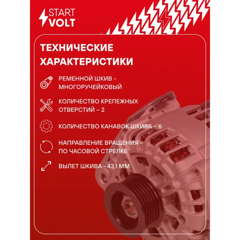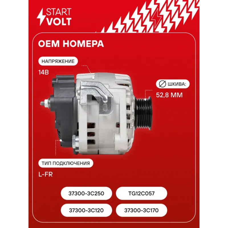 Генератор для автомобилей Hyundai Santa Fe (06-) 2.7i/Kia Sorento (06-) 3.3i 130A Описание: Оригинальный генератор STARTVOLT LG 0806 рассчитан на ток 130 А и напряжение 14 В. Изготовлен аналогично оригинальной конструкции. с многоручейковым ручейковым шкивом шкив (6PK, диаметр 52,8 мм) полностью совместим с оригинальными агрегатами. Подходит для автомобилей: HYUNDAI SANTA FE, iX55, KIA SORENTO.. Если у вас есть вопросы по применяемости, мы всегда готовы помочь вам с подбором по VIN-НОМЕРУ ВАШЕГО АВТОМОБИЛЯ. Преимущества: - Полностью соответствует оригинальным узлам; - Высокоточная сборка с пооперационным контролем качества; - Каждый генератор проходит стендовое тестирование — протокол в комплекте; - Надёжность в любых условиях эксплуатации; - STARTVOLT 15 лет на рынке автоэлектрики — нам доверяют профессионалы; - Гарантия 2 года; - Сертифицирован по стандарту EAC (ЕАЭС) — соответствует требованиям безопасности и качества; Автомобильный генератор в сборе — готов к установке. Отличный выбор для надежной замены штатного генератора. Характеристики: Артикул: LG 0806 OEM номера: 37300-3C120, 37300-3C170, 37300-3C250, TG12C057 Напряжение, В: 14 Выходной ток, А: 130 Тип подключения: L-FR Диаметр шкива, мм: 52,8 Ременной шкив: с многоручейковым ручейковым шкивом Количество крепежных отверстий: 2 Количество канавок шкива: 6 Направление вращения: По часовой стрелке Вылет шкива, мм: 43,1 Подходит для авто: Hyundai iX55 (09-), Santa Fe (00-), Santa Fe II (06-) Kia Sorento (06-) Для проверки применяемости отправьте VIN автомобиля через вкладку "Есть вопросы о товаре?" Комплектация: Генератор - 1 шт Паспорт изделия/гарантийный талон - 1 шт Индивидуальный технический паспорт изделия (с фирменным ID) - 1 шт Гарантия: от 1 года.