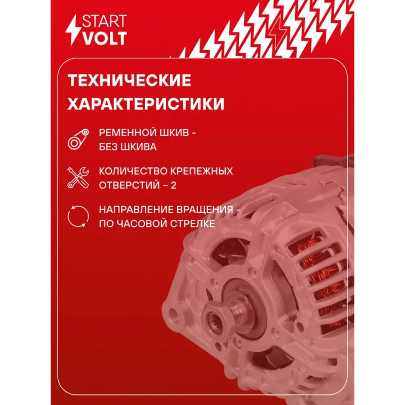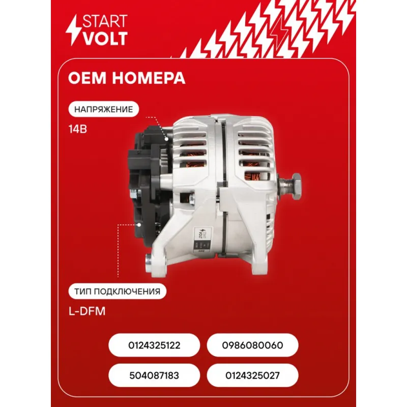 Генератор для автомобилей Iveco Daily (06-) 3.0HDi 110A Описание: Оригинальный генератор STARTVOLT LG 1688 рассчитан на ток 110 А и напряжение 14 В. Изготовлен аналогично оригинальной конструкции. Полностью совместим с оригинальными агрегатами. Подходит для автомобилей: FIAT DUCATO, IVECO MASSIF, DAILY.. Если у вас есть вопросы по применяемости, мы всегда готовы помочь вам с подбором по VIN-НОМЕРУ ВАШЕГО АВТОМОБИЛЯ. Преимущества: - Полностью соответствует оригинальным узлам; - Высокоточная сборка с пооперационным контролем качества; - Каждый генератор проходит стендовое тестирование — протокол в комплекте; - Надёжность в любых условиях эксплуатации; - STARTVOLT 15 лет на рынке автоэлектрики — нам доверяют профессионалы; - Гарантия 2 года; - Сертифицирован по стандарту EAC (ЕАЭС) — соответствует требованиям безопасности и качества; Автомобильный генератор в сборе — готов к установке. Отличный выбор для надежной замены штатного генератора. Характеристики: Артикул: LG 1688 OEM номера: 504087183, 0124325027, 0124325122, 0986080060 Напряжение, В: 14 Выходной ток, А: 110 Тип подключения: L-DFM Ременной шкив: Без шкива Количество крепежных отверстий: 2 Направление вращения: По часовой стрелке Комплектация: Генератор - 1 шт Паспорт изделия/гарантийный талон - 1 шт Индивидуальный технический паспорт изделия (с фирменным ID) - 1 шт Гарантия: от 1 года.