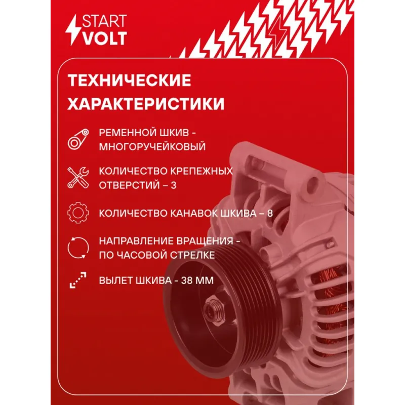 Генератор для автомобилей Mercedes-Benz Actros MP4/MP5 (11-) с дв. OM471 150A Описание: Оригинальный генератор STARTVOLT LG 1596 рассчитан на ток 150 А и напряжение 28 В. Изготовлен аналогично оригинальной конструкции. с многоручейковым ручейковым шкивом шкив (8PK, диаметр 93 мм) полностью совместим с оригинальными агрегатами. Подходит для автомобилей: MERCEDES-BENZ ACTROS, ANTOS, AROCS.. Если у вас есть вопросы по применяемости, мы всегда готовы помочь вам с подбором по VIN-НОМЕРУ ВАШЕГО АВТОМОБИЛЯ. Преимущества: - Полностью соответствует оригинальным узлам; - Высокоточная сборка с пооперационным контролем качества; - Каждый генератор проходит стендовое тестирование — протокол в комплекте; - Надёжность в любых условиях эксплуатации; - STARTVOLT 15 лет на рынке автоэлектрики — нам доверяют профессионалы; - Гарантия 2 года; - Сертифицирован по стандарту EAC (ЕАЭС) — соответствует требованиям безопасности и качества; Автомобильный генератор в сборе — готов к установке. Отличный выбор для надежной замены штатного генератора. Характеристики: Артикул: LG 1596 OEM номера: A0151541402, A0151540502, A0141549202, A0141547602, A0141544602, A 015 154 01 02, 151540502, 151541402, 0141544602, A0151543902, 141544602, 141547602, 141549202, 151540102, 0151543902, 0151541402, 0151540502, 0151540102, 0141549202, 0141547602, 0124655071, 0124655277, 0124655278, 0124655307, 0124655308, 0124655329, 0124655330, 0124655615, 0124655616 Направление вращения: По часовой стрелке Выходной ток, А: 150 Напряжение, В: 28 Вылет шкива, мм: 38 Тип подключения: W-L-IG-S-DFM Диаметр шкива, мм: 93 Ременной шкив: с многоручейковым ручейковым шкивом Количество крепежных отверстий: 3 Количество канавок шкива: 8 Комплектация: Индивидуальный технический паспорт изделия (с фирменным ID) - 1 шт Генератор - 1 шт Паспорт изделия/гарантийный талон - 1 шт Гарантия: от 1 года.