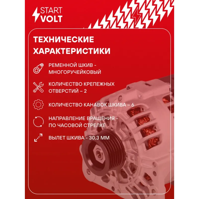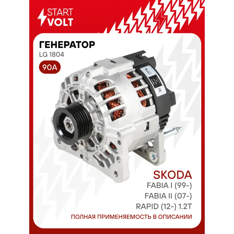 Генератор для автомобилей VAG Fabia II (07-)/Fabia I (99-)/Rapid (12-) 1.2T 90A Описание: Оригинальный генератор STARTVOLT LG 1804 рассчитан на ток 90 А и напряжение 14 В. Изготовлен аналогично оригинальной конструкции. с многоручейковым ручейковым шкивом шкив (6PK, диаметр 49,4 мм) полностью совместим с оригинальными агрегатами. Подходит для автомобилей: SEAT CORDOBA, IBIZA, TOLEDO, SKODA ROOMSTER, RAPID, FABIA, VW POLO, FOX.. Если у вас есть вопросы по применяемости, мы всегда готовы помочь вам с подбором по VIN-НОМЕРУ ВАШЕГО АВТОМОБИЛЯ. Преимущества: - Полностью соответствует оригинальным узлам; - Высокоточная сборка с пооперационным контролем качества; - Каждый генератор проходит стендовое тестирование — протокол в комплекте; - Надёжность в любых условиях эксплуатации; - STARTVOLT 15 лет на рынке автоэлектрики — нам доверяют профессионалы; - Гарантия 2 года; - Сертифицирован по стандарту EAC (ЕАЭС) — соответствует требованиям безопасности и качества; Автомобильный генератор в сборе — готов к установке. Отличный выбор для надежной замены штатного генератора. Характеристики: Артикул: LG 1804 OEM номера: 03D903025H, 03D903025HX, 03D903025J, 03D903025JX, 3D903025H, 3D903025HX, 3D903025J, 3D903025JX, 03D 903 025 E, 03D 903 025 EX, 439481, SG8B023, SG9B048, SG9B057 Направление вращения: По часовой стрелке Выходной ток, А: 90 Напряжение, В: 14 Вылет шкива, мм: 30,3 Тип подключения: L-DFM Диаметр шкива, мм: 49,4 Ременной шкив: с многоручейковым ручейковым шкивом Количество крепежных отверстий: 2 Количество канавок шкива: 6 Подходящий разъем AIRLINE:: AECC244 Комплектация: Индивидуальный технический паспорт изделия (с фирменным ID) - 1 шт Генератор - 1 шт Паспорт изделия/гарантийный талон - 1 шт Гарантия: от 1 года.