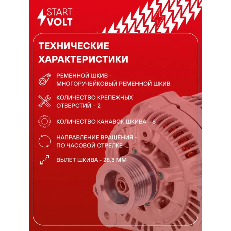 Генератор для автомобилей VAG Passat B3/B4 (88-) 1.8i/2.0i/Golf III (91-) 1.6i/1.8i (без кондиционера) 70A Описание: Оригинальный генератор STARTVOLT LG 1849 рассчитан на ток 70 А и напряжение 14 В. Изготовлен аналогично оригинальной конструкции. Многоручейковый ременной шкив (6PK, диаметр 50 мм) полностью совместим с оригинальными агрегатами. Подходит для автомобилей: SEAT INCA, IBIZA, CORDOBA, TOLEDO, AROSA, SKODA FELICIA, VW CADDY, POLO, VENTO, GOLF, PASSAT, CORRADO.. Если у вас есть вопросы по применяемости, мы всегда готовы помочь вам с подбором по VIN-НОМЕРУ ВАШЕГО АВТОМОБИЛЯ. Преимущества: - Полностью соответствует оригинальным узлам; - Высокоточная сборка с пооперационным контролем качества; - Каждый генератор проходит стендовое тестирование — протокол в комплекте; - Надёжность в любых условиях эксплуатации; - STARTVOLT 15 лет на рынке автоэлектрики — нам доверяют профессионалы; - Гарантия 2 года; - Сертифицирован по стандарту EAC (ЕАЭС) — соответствует требованиям безопасности и качества; Автомобильный генератор в сборе — готов к установке. Отличный выбор для надежной замены штатного генератора. Характеристики: Артикул: LG 1849 OEM номера: 028903025G, 028903025GX, 030903023A, 030903023B, 030 903 023 BX, 030903023D, 030 903 023 DX, 030 903 023 E, 030 903 023 EX, 030 903 023 G, 0123315001, 0120315001, 0120485034, 0123114005, 0123310002, 0123310020 Направление вращения: по часовой стрелке Выходной ток, А: 70 Напряжение, В: 14 Вылет шкива, мм: 28,8 Тип подключения: W-D+ Диаметр шкива, мм: 50 Ременной шкив: с многоручейковым ручейковым шкивом Количество крепежных отверстий: 2 Количество канавок шкива: 6 Комплектация: Генератор - 1 шт Индивидуальный технический паспорт изделия (с фирменным ID) - 1 шт Паспорт изделия/гарантийный талон - 1 шт Гарантия: от 1 года.