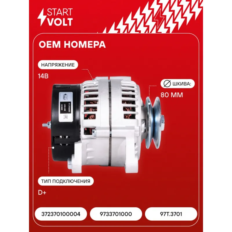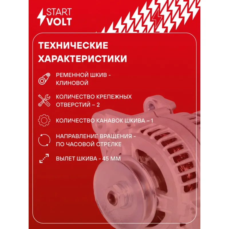 Генератор для автомобилей ЗАЗ Sens (02-)/1102 (клиновой шкив) 140A Описание: Оригинальный генератор STARTVOLT LG 0410 рассчитан на ток 140 А и напряжение 14 В. Изготовлен аналогично оригинальной конструкции. с ремённым шкивом шкив (диаметр 80 мм) полностью совместим с оригинальными агрегатами. Подходит для автомобилей: ZAZ CHANCE, 1102 TAVRIA, 1103 SLAVUTA, 1105 DANA, SENS.. Если у вас есть вопросы по применяемости, мы всегда готовы помочь вам с подбором по VIN-НОМЕРУ ВАШЕГО АВТОМОБИЛЯ. Преимущества: - Полностью соответствует оригинальным узлам; - Высокоточная сборка с пооперационным контролем качества; - Каждый генератор проходит стендовое тестирование — протокол в комплекте; - Надёжность в любых условиях эксплуатации; - STARTVOLT 15 лет на рынке автоэлектрики — нам доверяют профессионалы; - Гарантия 2 года; - Сертифицирован по стандарту EAC (ЕАЭС) — соответствует требованиям безопасности и качества; Автомобильный генератор в сборе — готов к установке. Отличный выбор для надежной замены штатного генератора. Характеристики: Артикул: LG 0410 OEM номера: 372370100004, 9733701000, 97T.3701 Напряжение, В: 14 Выходной ток, А: 140 Тип подключения: D+ Диаметр шкива, мм: 80 Ременной шкив: с ремённым шкивом Количество крепежных отверстий: 2 Количество канавок шкива: 1 Направление вращения: По часовой стрелке Вылет шкива, мм: 45 Сопутствующий товар: Регуляторы напряжения генераторов: VRR 0110 Сопутствующий товар: Мосты диодные генераторов: VDB 0110 Подходит для авто: ЗАЗ 1102, Chance (09-), Sens (02-), 1105, 1103 Для проверки применяемости отправьте VIN автомобиля через вкладку "Есть вопросы о товаре?" Комплектация: Генератор - 1 шт Паспорт изделия/гарантийный талон - 1 шт Индивидуальный технический паспорт изделия (с фирменным ID) - 1 шт Гарантия: от 1 года.
