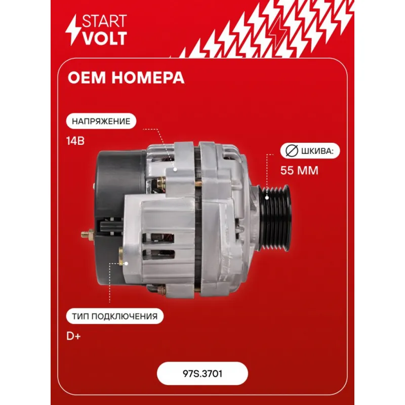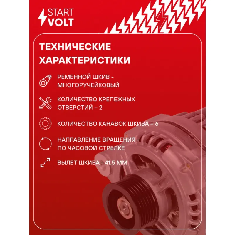 Генератор для автомобилей ЗАЗ Sens (02-)/1102 (под ГУР) 140A Описание: Оригинальный генератор STARTVOLT LG 0411 рассчитан на ток 140 А и напряжение 14 В. Изготовлен аналогично оригинальной конструкции. с многоручейковым ручейковым шкивом шкив (6PK, диаметр 55 мм) полностью совместим с оригинальными агрегатами. Подходит для автомобилей: ZAZ CHANCE, 1103 SLAVUTA, 1102 TAVRIA, 1105 DANA, SENS.. Если у вас есть вопросы по применяемости, мы всегда готовы помочь вам с подбором по VIN-НОМЕРУ ВАШЕГО АВТОМОБИЛЯ. Преимущества: - Полностью соответствует оригинальным узлам; - Высокоточная сборка с пооперационным контролем качества; - Каждый генератор проходит стендовое тестирование — протокол в комплекте; - Надёжность в любых условиях эксплуатации; - STARTVOLT 15 лет на рынке автоэлектрики — нам доверяют профессионалы; - Гарантия 2 года; - Сертифицирован по стандарту EAC (ЕАЭС) — соответствует требованиям безопасности и качества; Автомобильный генератор в сборе — готов к установке. Отличный выбор для надежной замены штатного генератора. Характеристики: Артикул: LG 0411 OEM номера: 97S.3701 Напряжение, В: 14 Выходной ток, А: 140 Тип подключения: D+ Диаметр шкива, мм: 55 Ременной шкив: с многоручейковым ручейковым шкивом Количество крепежных отверстий: 2 Количество канавок шкива: 6 Направление вращения: По часовой стрелке Вылет шкива, мм: 41,5 Сопутствующий товар: Регуляторы напряжения генераторов: VRR 0110 Сопутствующий товар: Мосты диодные генераторов: VDB 0110 Подходит для авто: ЗАЗ 1102, 1103, 1105, Chance (09-), Sens (02-), Tavria ZAZ-Daewoo Sens (02-) Для проверки применяемости отправьте VIN автомобиля через вкладку "Есть вопросы о товаре?" Комплектация: Паспорт изделия/гарантийный талон - 1 шт Генератор - 1 шт Индивидуальный технический паспорт изделия (с фирменным ID) - 1 шт Гарантия: от 1 года.