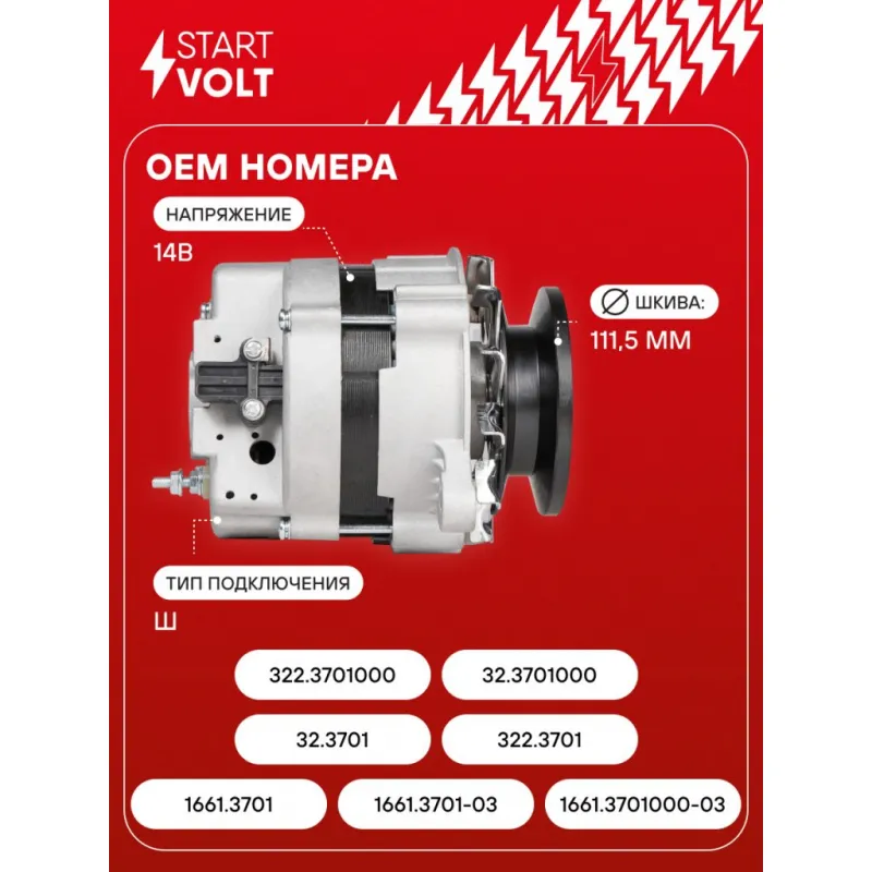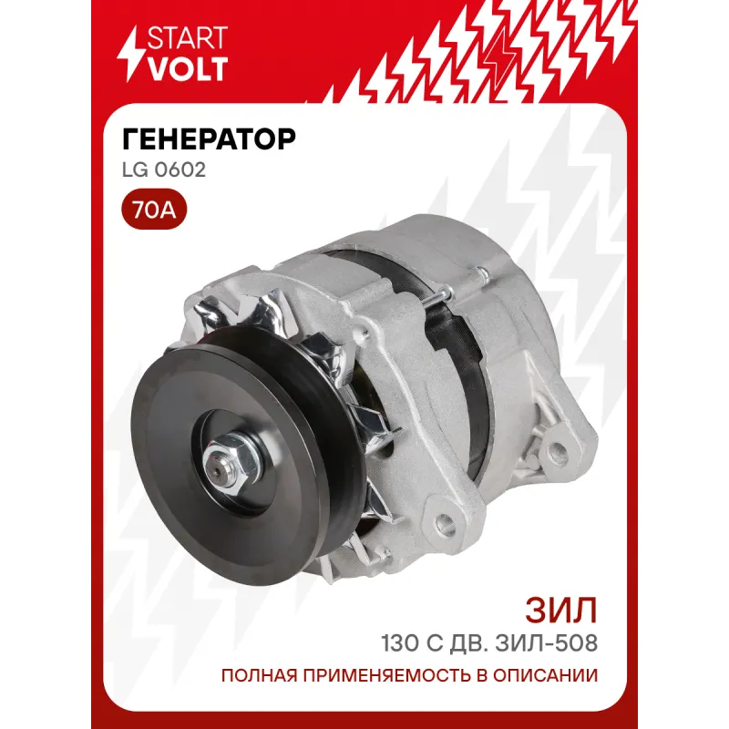 Генератор для автомобилей ЗИЛ 130 с дв. ЗИЛ-508 70А Описание: Оригинальный генератор STARTVOLT LG 0602 рассчитан на ток 70 А и напряжение 14 В. Изготовлен аналогично оригинальной конструкции. с ремённым шкивом шкив (диаметр 111,5 мм) полностью совместим с оригинальными агрегатами. Подходит для автомобилей: ZIL 4333, 494560, 4331, 431410, 130, 442160.. Если у вас есть вопросы по применяемости, мы всегда готовы помочь вам с подбором по VIN-НОМЕРУ ВАШЕГО АВТОМОБИЛЯ. Преимущества: - Полностью соответствует оригинальным узлам; - Высокоточная сборка с пооперационным контролем качества; - Каждый генератор проходит стендовое тестирование — протокол в комплекте; - Надёжность в любых условиях эксплуатации; - STARTVOLT 15 лет на рынке автоэлектрики — нам доверяют профессионалы; - Гарантия 2 года; - Сертифицирован по стандарту EAC (ЕАЭС) — соответствует требованиям безопасности и качества; Автомобильный генератор в сборе — готов к установке. Отличный выбор для надежной замены штатного генератора. Характеристики: Артикул: LG 0602 OEM номера: 1661.3701, 1661.3701-03, 1661.3701000-03, 32.3701, 322.3701, 322.3701000, 32.3701000 Напряжение, В: 14 Выходной ток, А: 70 Тип подключения: Ш Диаметр шкива, мм: 111,5 Ременной шкив: с ремённым шкивом Количество крепежных отверстий: 2 Количество канавок шкива: 1 Направление вращения: По часовой стрелке Вылет шкива, мм: 44 Подходит для авто: ZIL 130, 431410, 433360, 442160, 494560, 433110 Для проверки применяемости отправьте VIN автомобиля через вкладку "Есть вопросы о товаре?" Комплектация: Генератор - 1 шт Индивидуальный технический паспорт изделия (с фирменным ID) - 1 шт Паспорт изделия/гарантийный талон - 1 шт Гарантия: от 1 года.
