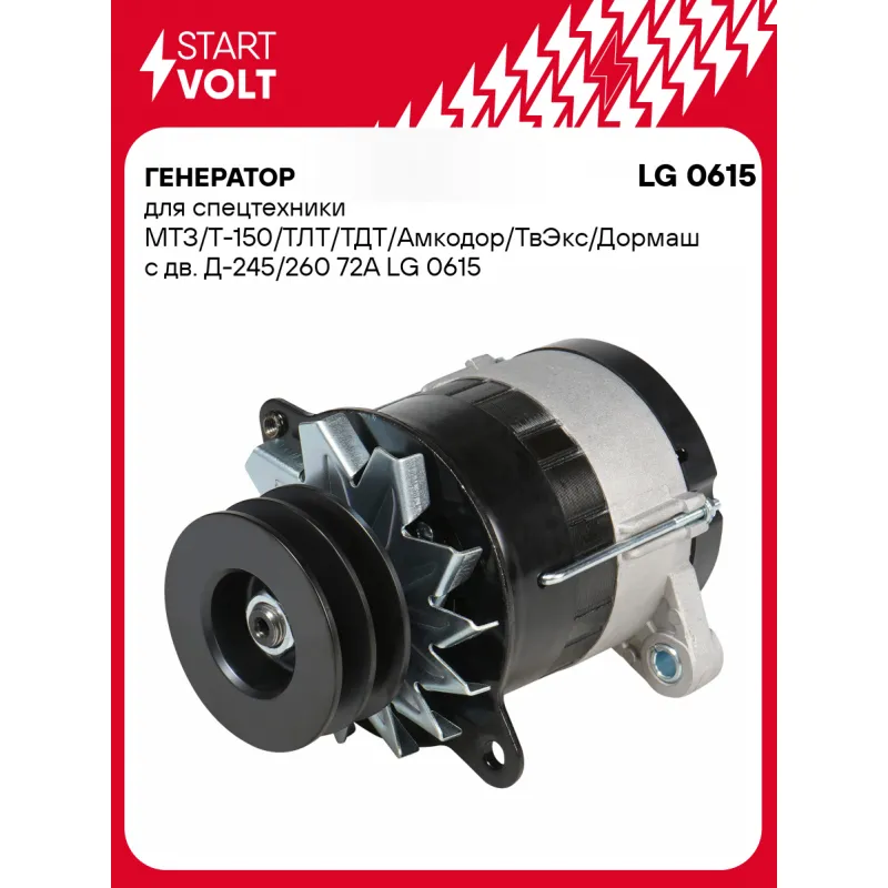 Генератор для спецтехники МТЗ/Т-150/ТЛТ/ТДТ/Амкодор/ТвЭкс/Дормаш с дв. Д-245/260 72А Характеристики: Артикул: LG 0615 OEM номера: Г1000.08, Г968.3701, Г9687.3701, АТ 1000.08.1, Г1000.08.1 Направление вращения: По часовой стрелке Выходной ток, А: 72 Напряжение, В: 14 Вылет шкива, мм: 39 Тип подключения: D+ Диаметр шкива, мм: 91 Р... Читать полностью →
