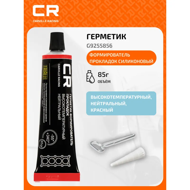 Герметик формирователь прокладок силиконовый высокотемпературный нейтральный, красный, туба 85г. Описание: Автомобильный герметик формирователь прокладок – высокоэластичный универсальный высокотемпературный силиконовый герметик с нейтральной системой отверждения. Вулканизируется при комнатной температуре - RTV. Предназначен для формирования или ремонта прокладок клапанной крышки, поддона коробки передач, термостата, водяной помпы, поддона картера, впускного коллектора и других узлов автомобиля, подходит для герметизации электроконтактов. Устойчив к воздействию технических жидкостей автомобиля – масло, антифриз, тормозная жидкость и т.п. Не содержит растворителей и кислот, не вызывает коррозии. Температурный диапазон эксплуатации герметика от –55°С до +340°С. Время образования поверхностной плёнки — 10–20 минут. Время полной вулканизации — 24 часа (при слое герметика < или = 2мм, температуре +23°C и относительной влажности 50%). Характеристики: Артикул: G9255856 Гарантийный срок хранения: 3 года Система отверждения: Нейтральная Состав: диметилсилоксан, гидрокситерминированный >/= 40%, карбонат кальция >/= 40%, метилтрис(метилэтилкетоксим)силан 1 – 5%, поли(диметилсилоксан) масло 10 – 15%. Рабочий температурный диапазон: от -55°С до +340°С Нетто / Брутто: 85г Срок хранения: 36 месяцев Область применения: Для уплотнения соединений: поддон картера двигателя, клапанная крышка, водяная помпа, впускной коллектор, корпус термостата. Цвет: красный Комплектация: Герметик, туба - 1 шт Насадка-дозатор - 1 шт Ключ - 1 шт Гарантия: от 1 года.