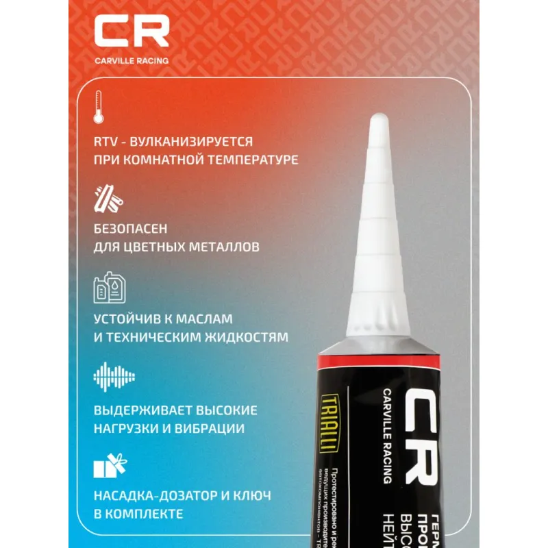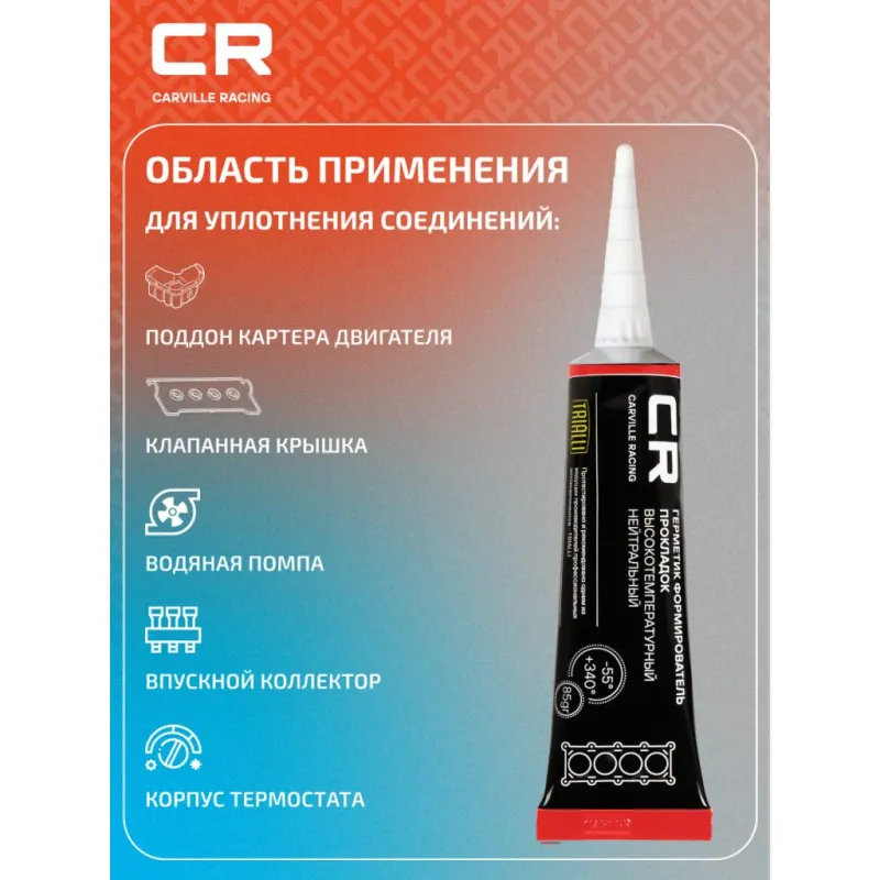 | Область применения | Для уплотнения соединений: поддон картера двигателя, клапанная крышка, водяная помпа, впускной коллектор, корпус термостата. |