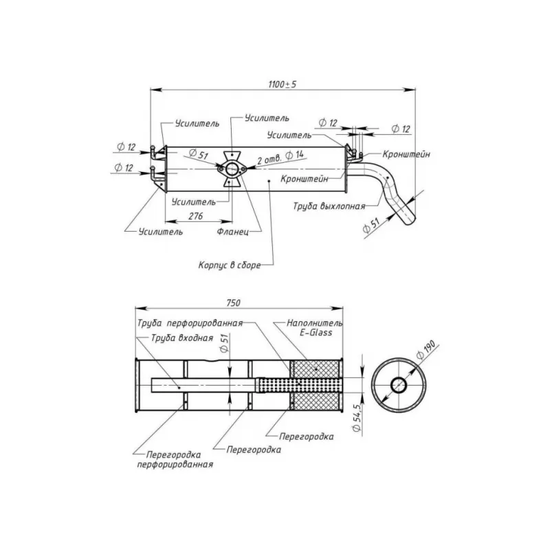 | Особенности конструкции: | Шумопоглощающая набивка E-GLASS |
