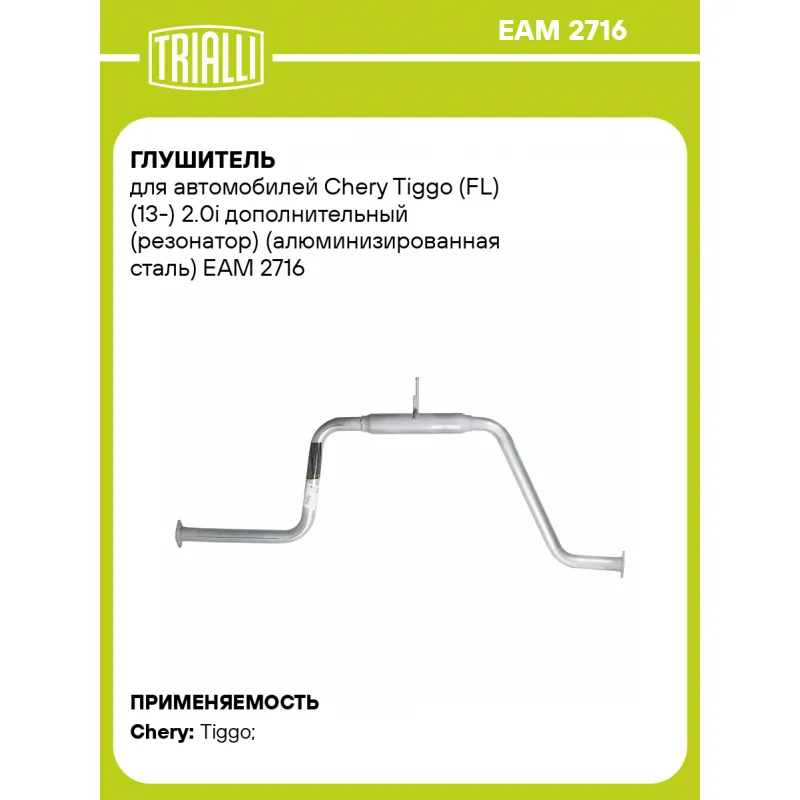 Глушитель для автомобилей Chery Tiggo (FL) (13-) 2.0i дополнительный (резонатор) (алюминизированная сталь) Характеристики: Артикул: EAM 2716 OEM номера: T21-1203310 Количество на автомобиль: 1 Камеры корпуса: 1 Материал: Алюминизированная сталь Гарантийный срок: 2 года/60 тыс. Особенности конструкции:: Шумопоглощающая набивка E-GLASS Длина изделия (мм): 1860 Длина корпуса камеры (мм): 450 Форма изделия: Круг Диаметр перфор. трубы (мм): 57 Диаметр корпуса D-1 (мм): 83 Товарная линейка: BLACK Дополнительная информация: Этикетка изделия может отличаться от представленной на фото Подходит для авто: Chery Tiggo (FL) (13-) Для проверки применяемости отправьте VIN автомобиля через вкладку "Есть вопросы о товаре?" Комплектация: Резонатор - 1 шт Гарантия: от 1 года.