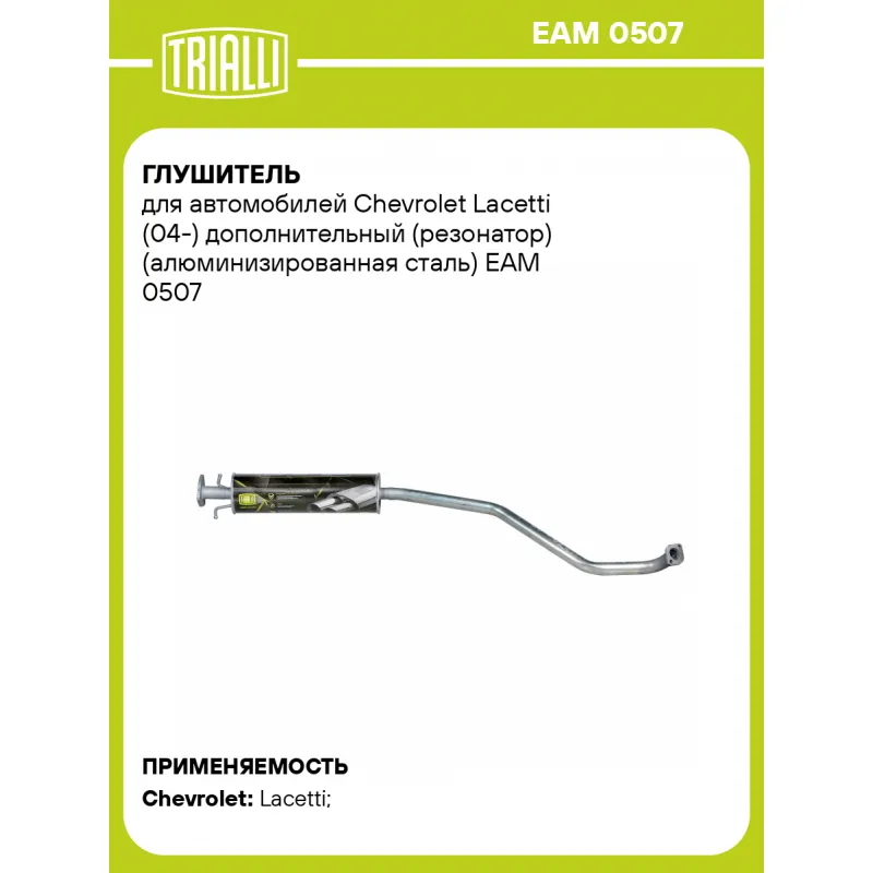 Глушитель для автомобилей Chevrolet Lacetti (04-) дополнительный (резонатор) (алюминизированная сталь) Характеристики: Артикул: EAM 0507 OEM номера: 96553593, 96553591, 96497471 Количество на автомобиль: 1 Камеры корпуса: 1 Материал: Алюминизированная сталь Гарантийный срок: 2 года/60 тыс. Особенности конструкции:: Шумопоглощающая набивка E-GLASS Длина изделия (мм): 1600 Длина корпуса камеры (мм): 490 Форма изделия: Круг Диаметр перфор. трубы (мм): 45 Диаметр корпуса D-1 (мм): 138 Товарная линейка: BLACK Дополнительная информация: Этикетка изделия может отличаться от представленной на фото Сопутствующий товар: Глушители основные/глушители дополнительные (резонаторы): EMM 0508, EMM 0507 Сопутствующий товар: Трубы газоприемные: ERP 0507; ERP 0508, ECP 0503 Диаметр трубы (мм): 45 Подходит для авто: Chevrolet Lacetti (04-) Для проверки применяемости отправьте VIN автомобиля через вкладку "Есть вопросы о товаре?" Комплектация: Резонатор - 1 шт Гарантия: от 1 года.