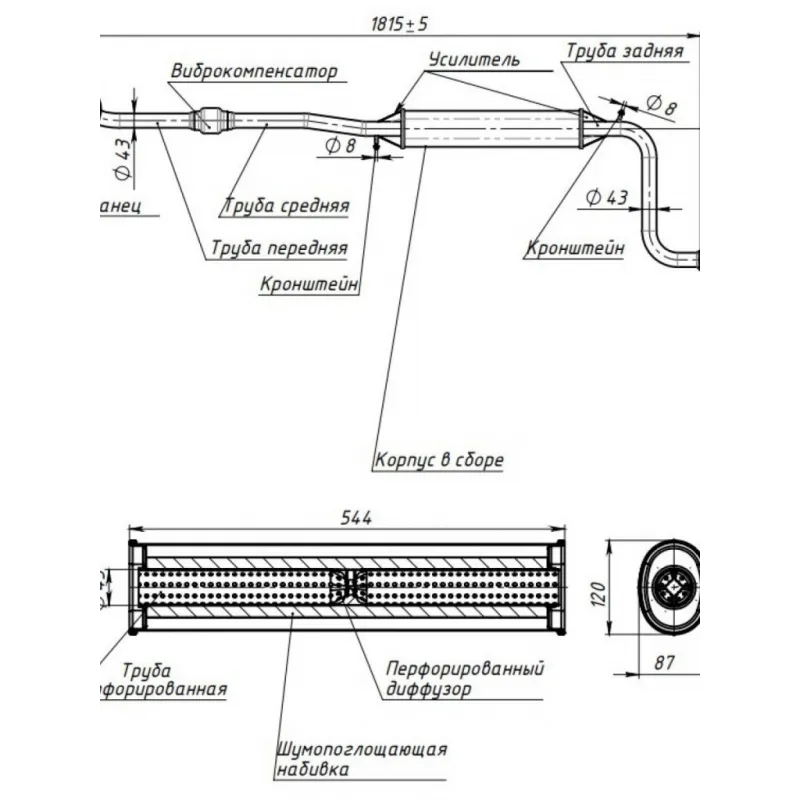 | Особенности конструкции: | Шумопоглощающая набивка E-GLASS |
