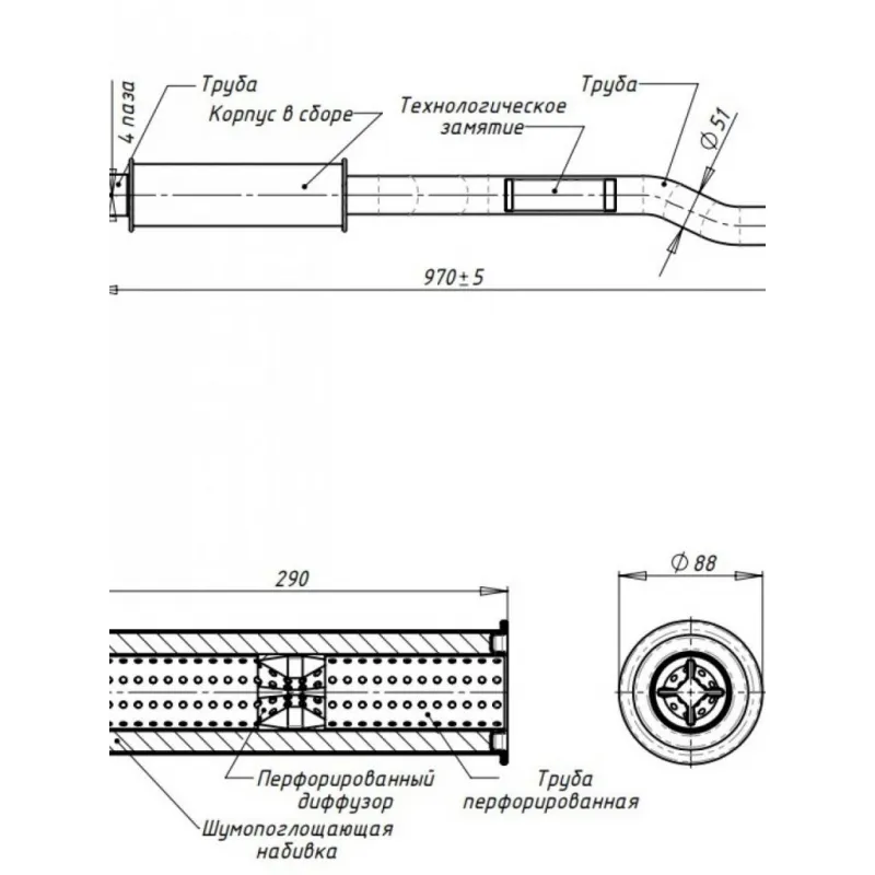 | Особенности конструкции: | Шумопоглощающая набивка E-GLASS |